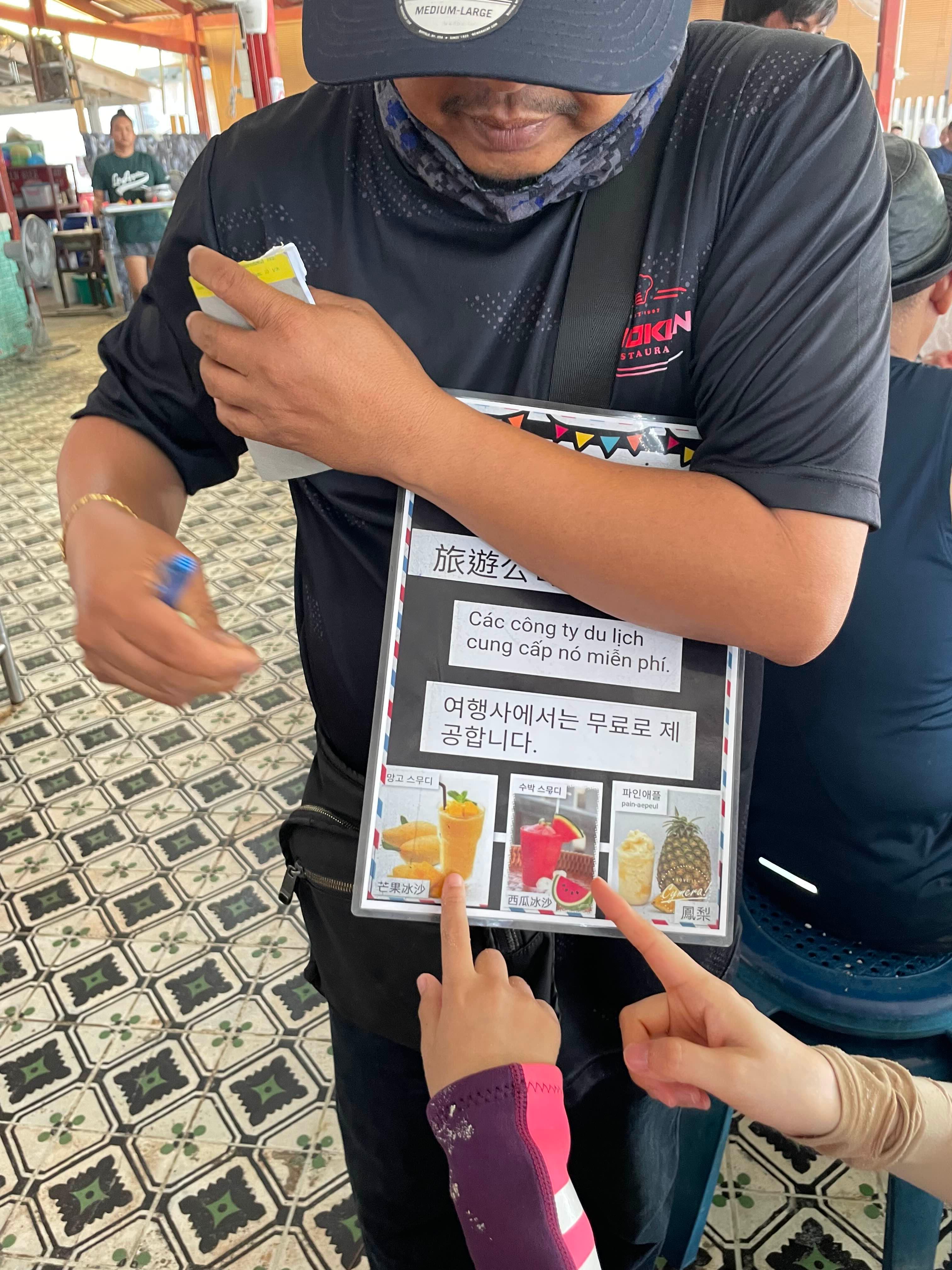비치타월을 잘 챙기고 있으라고 한다. 이 비치타월이 우리 투어 하는 사람들 인식표라고.ㅎㅎ 그리고, 정해진 시간 약속을 지켜달라고... 암튼 이야기 듣고, 섬투어 선착장으로 출발!