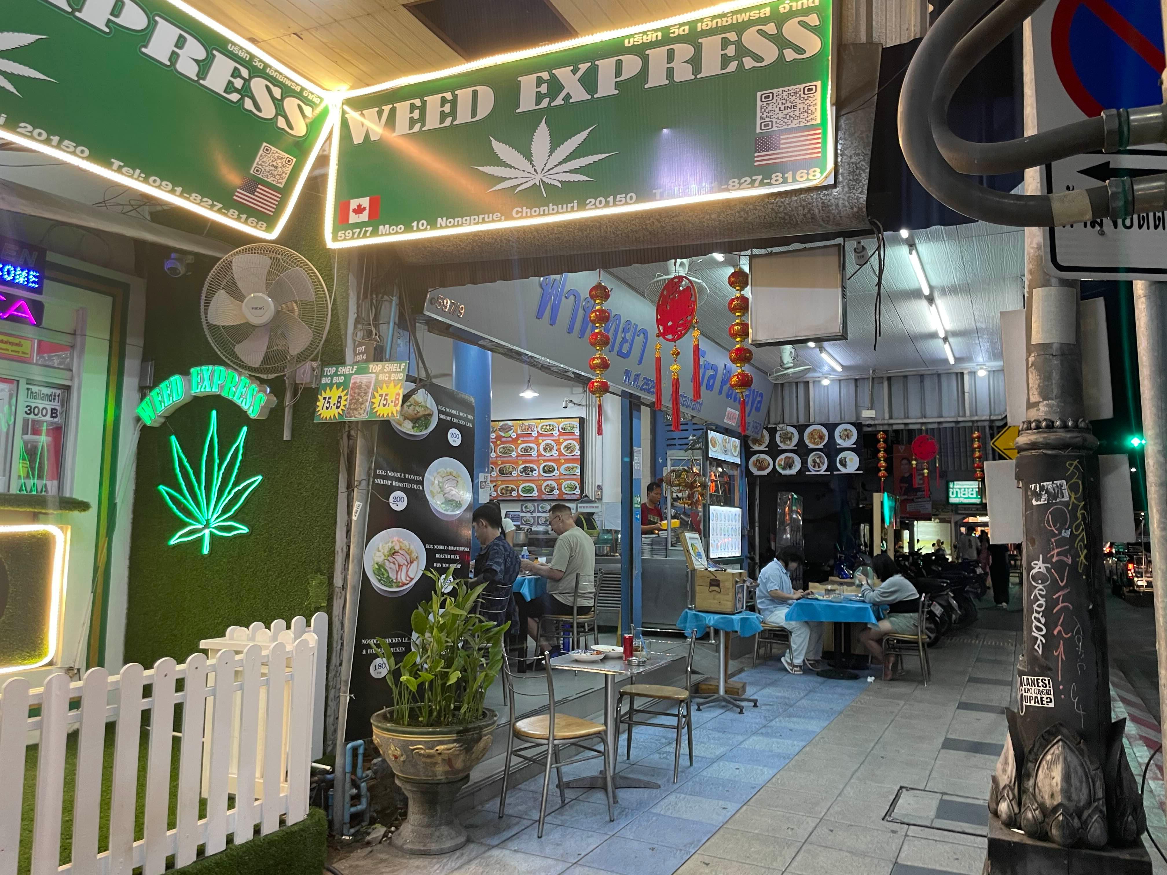 태국에는 길거리를 걸어 다니다 보면.. 아래의 나뭇잎이 있는 상점들이 많이 보인다. 대마를 판매하고 상점들... 상당히 많이 보인다.
