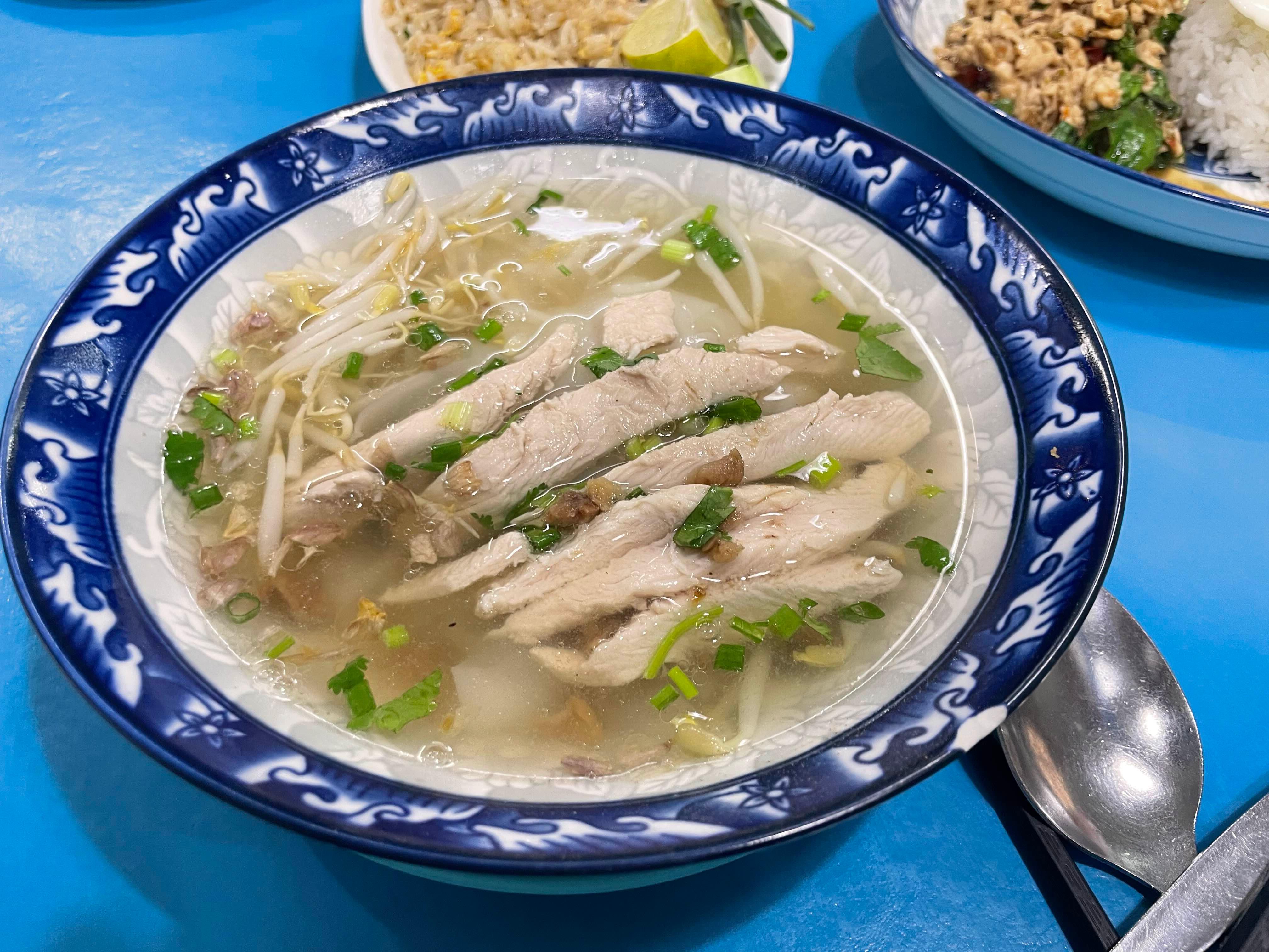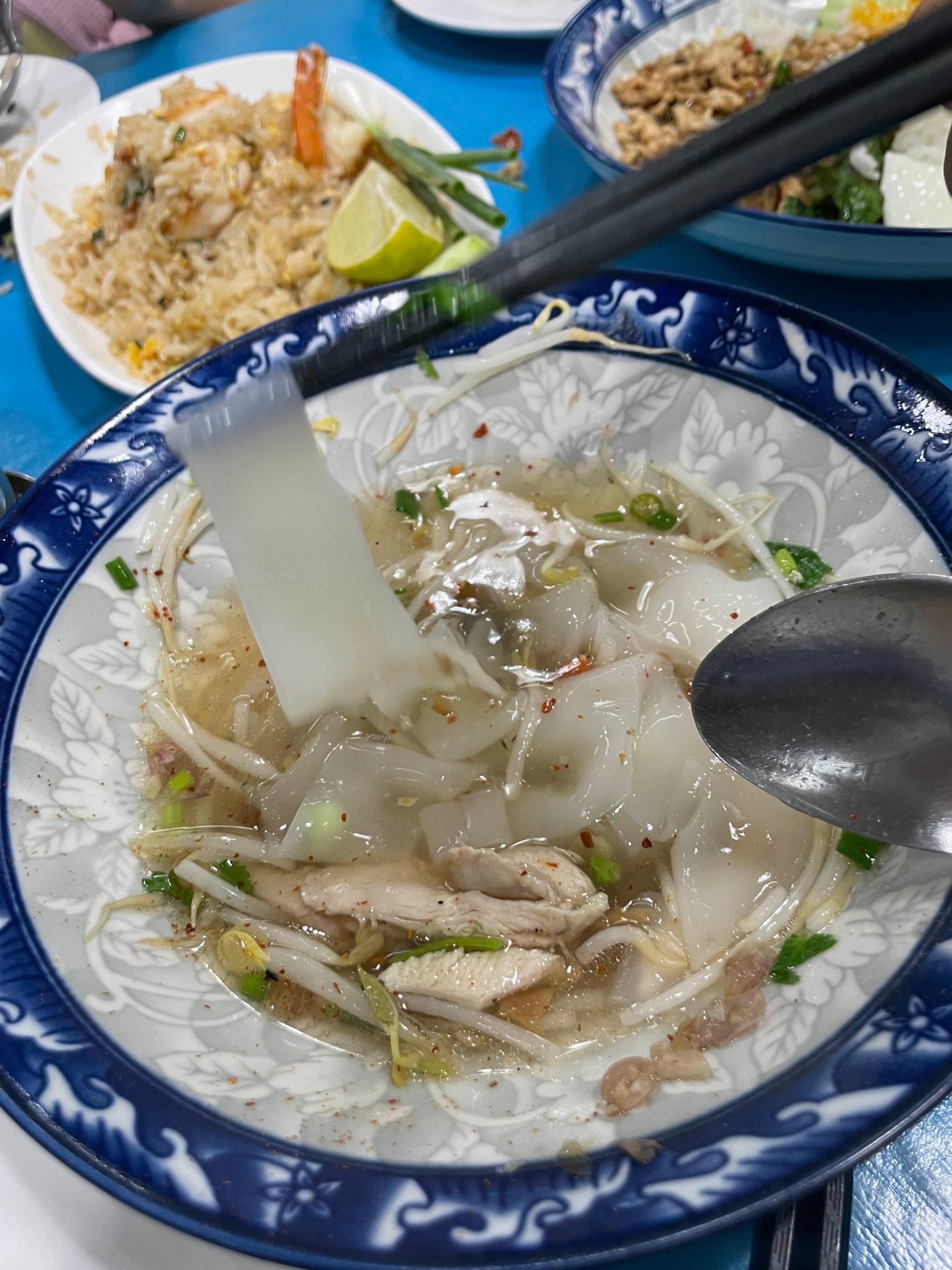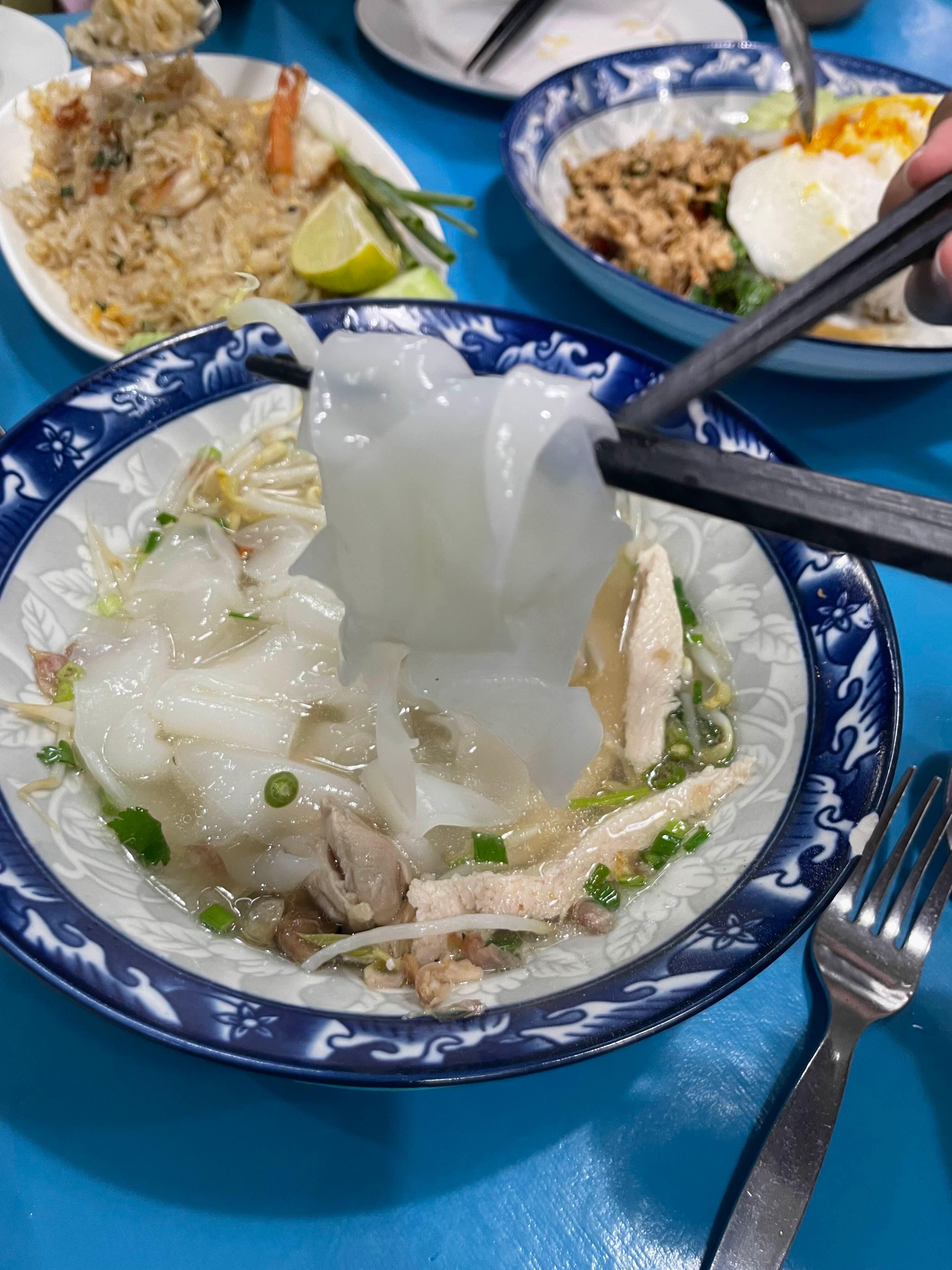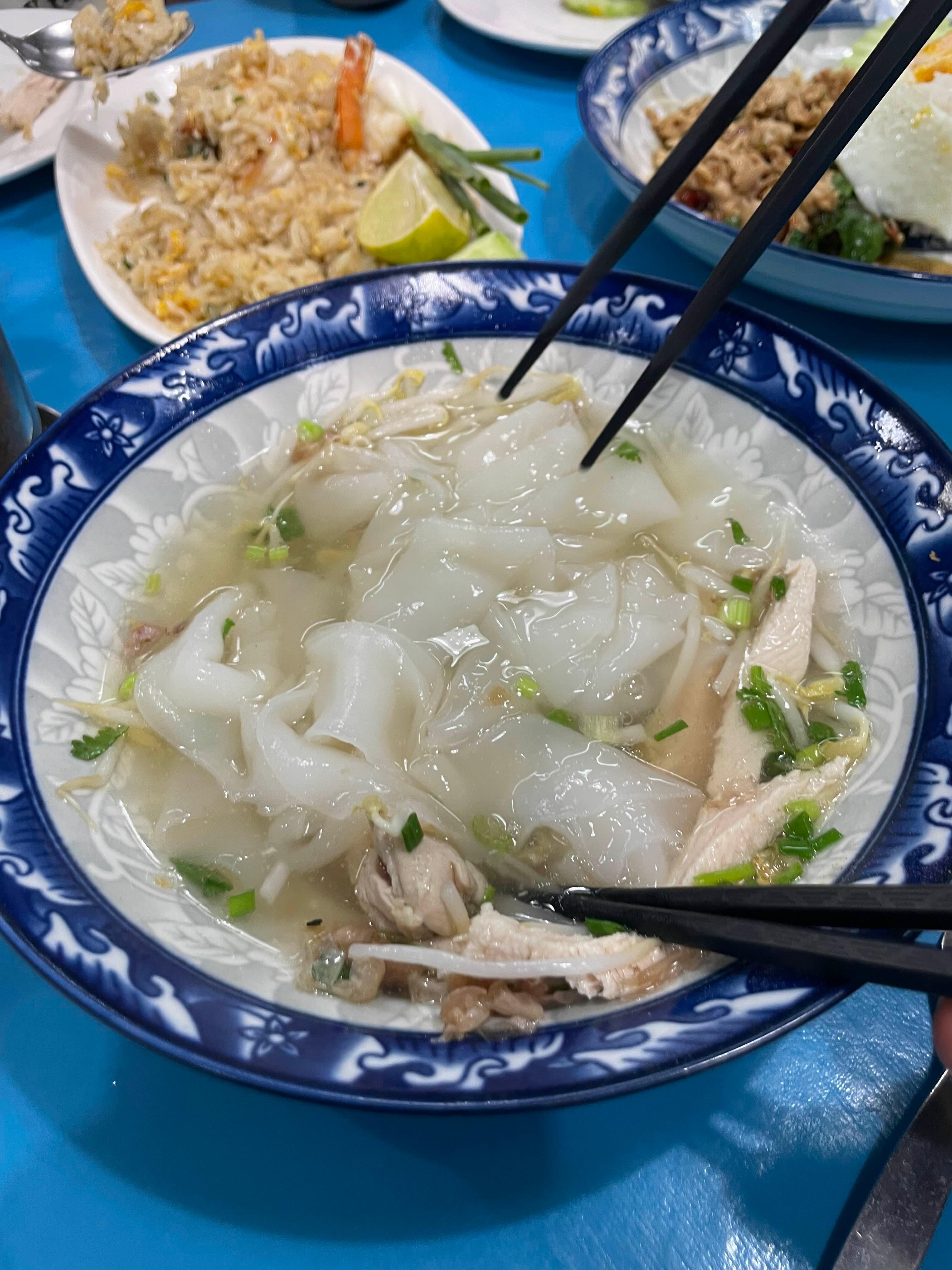 이 식당은 국수가 맛나니!! 기본국수 하나 주문한다. 닭고기 넓적면 국수!! 80밧!