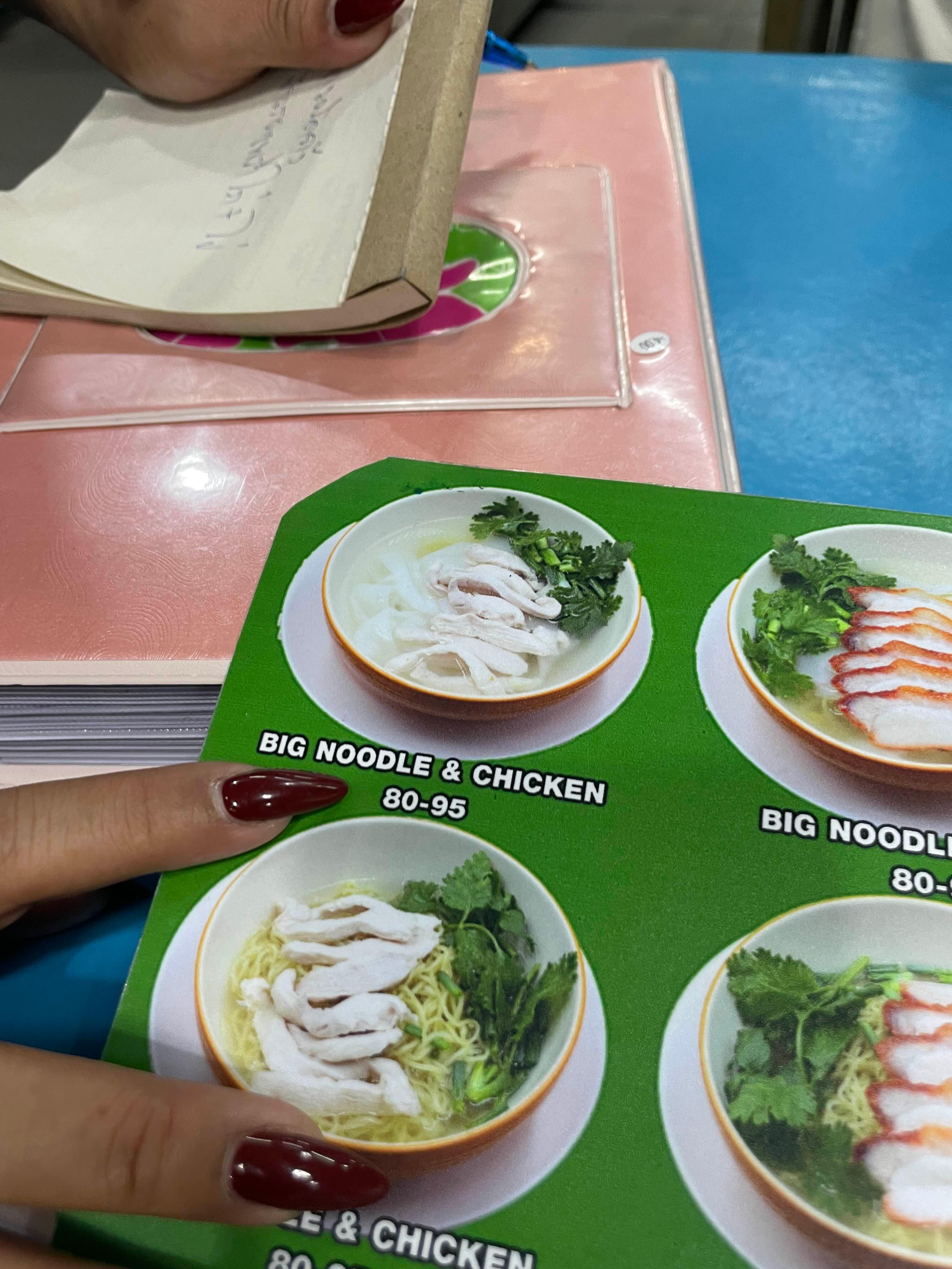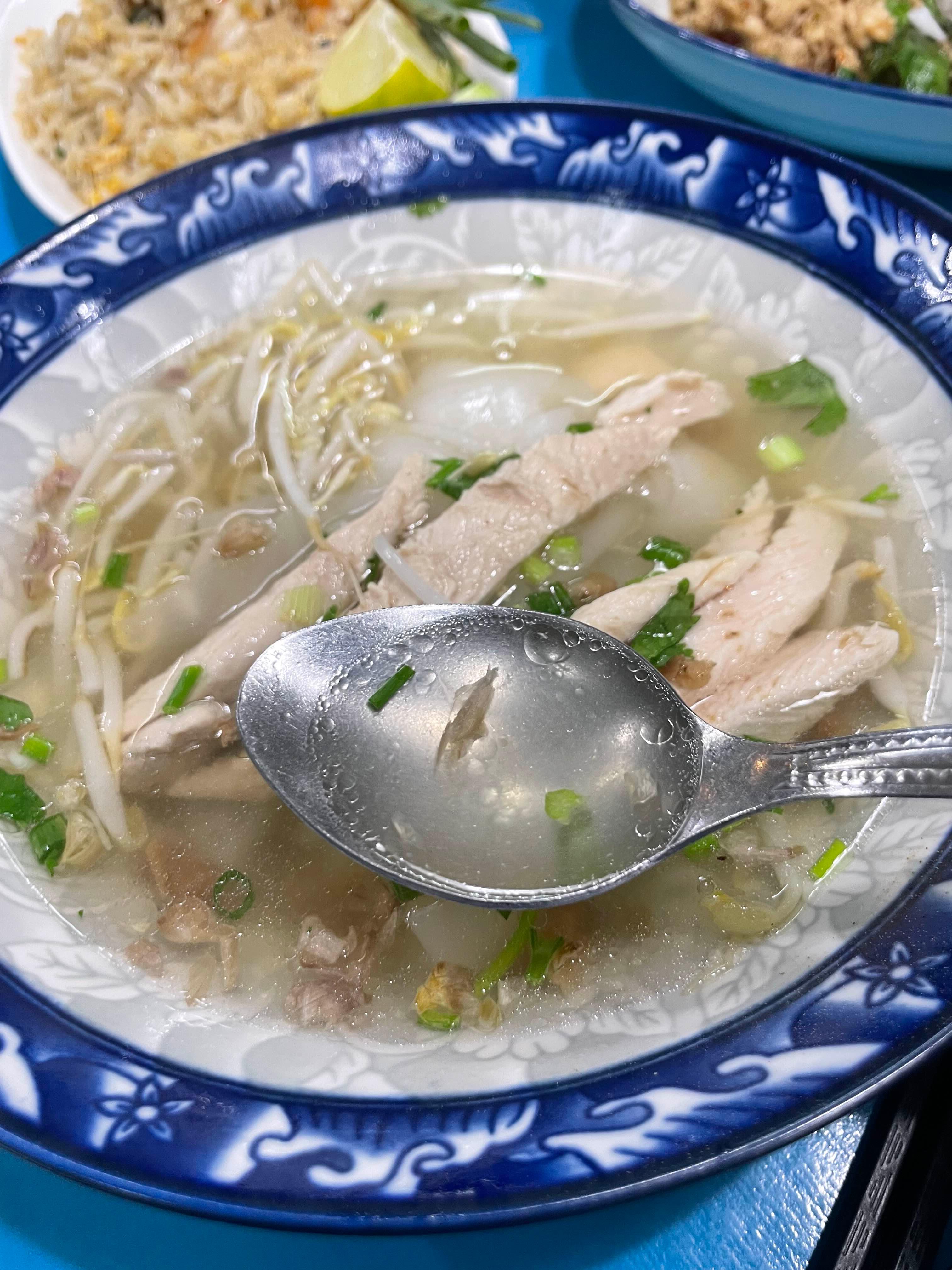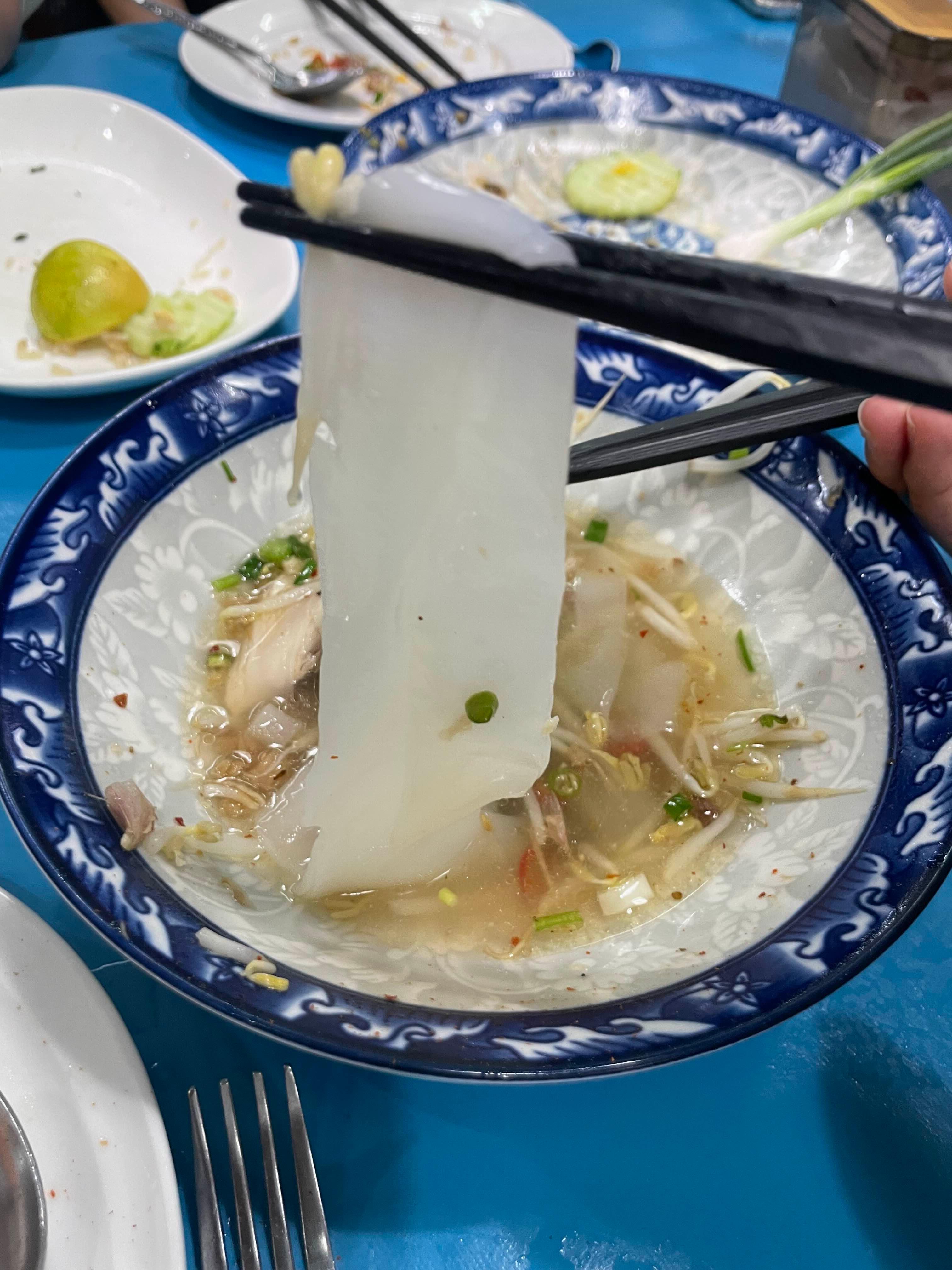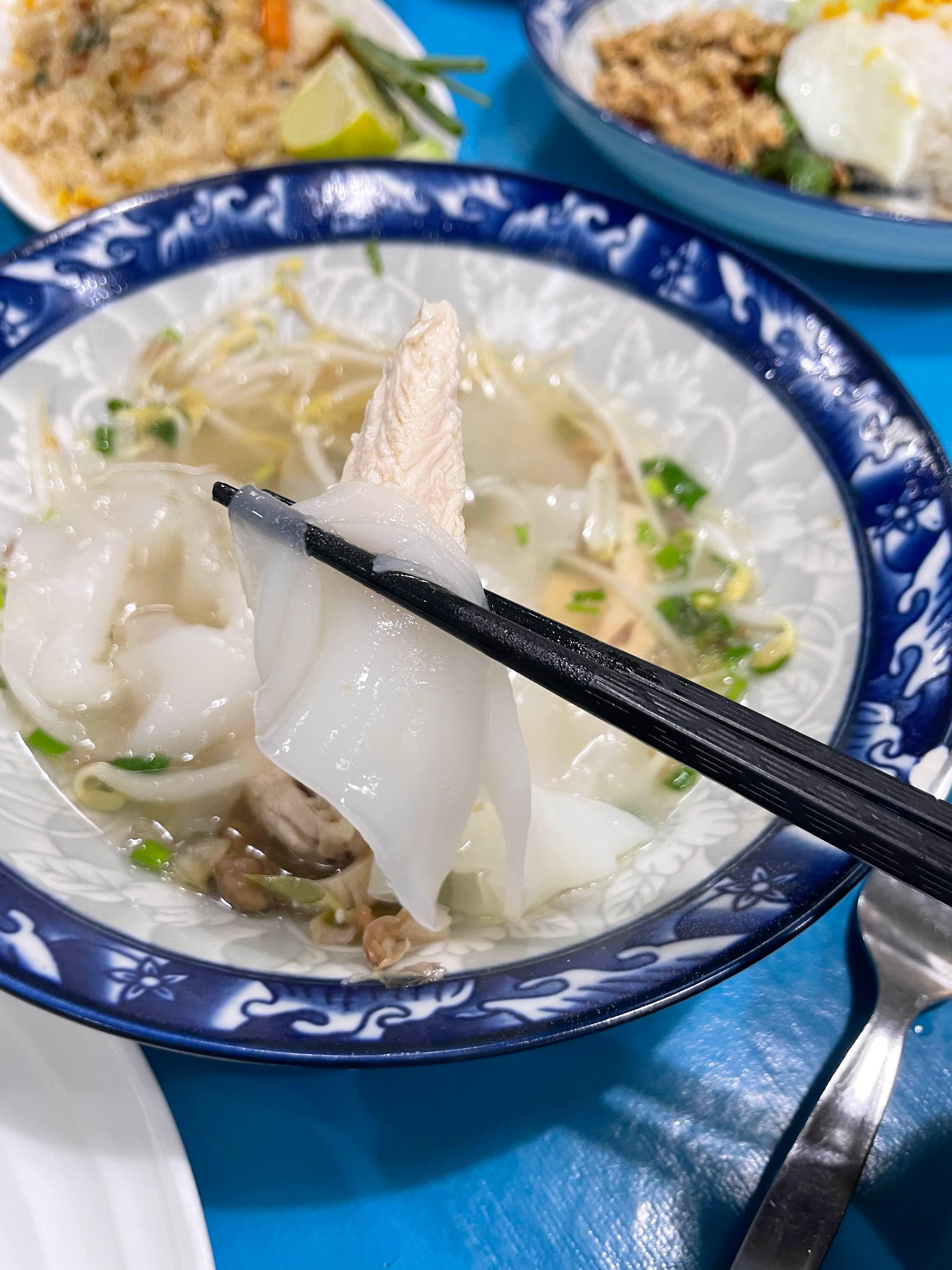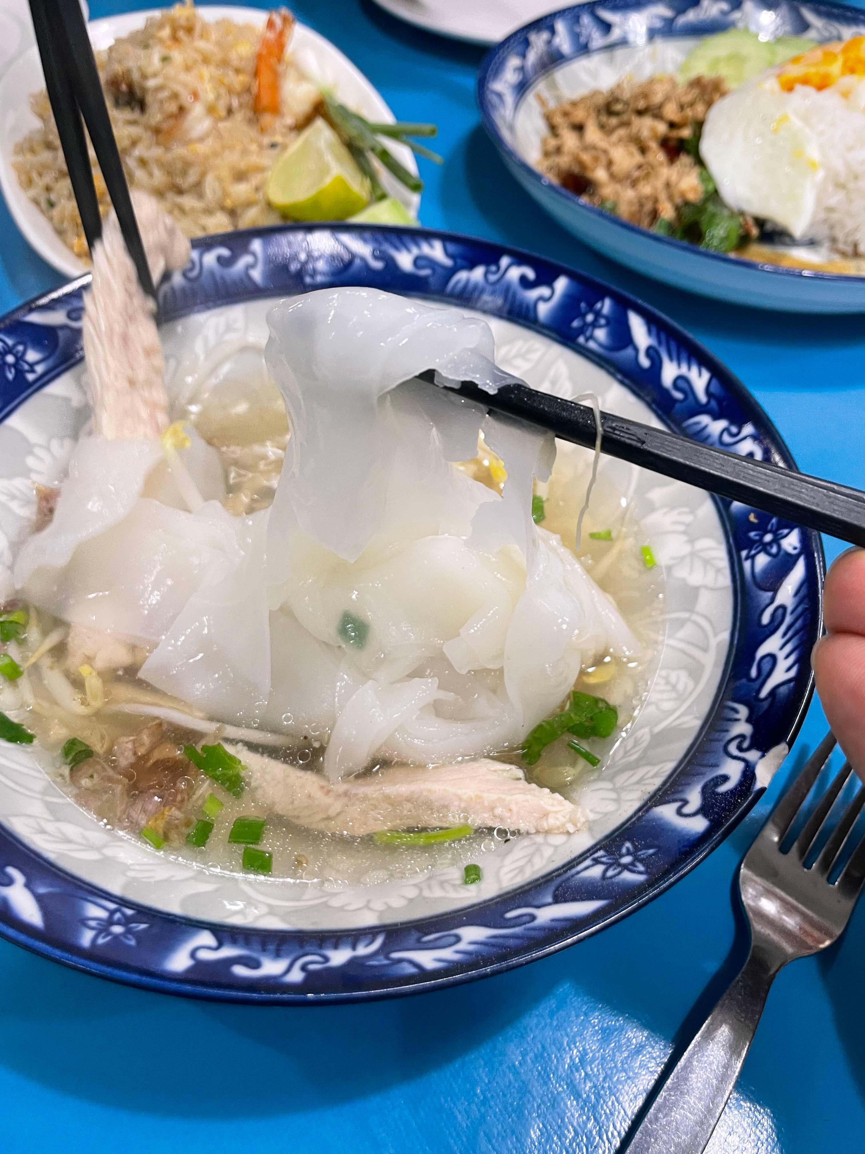 이 식당은 국수가 맛나니!! 기본국수 하나 주문한다. 닭고기 넓적면 국수!! 80밧!