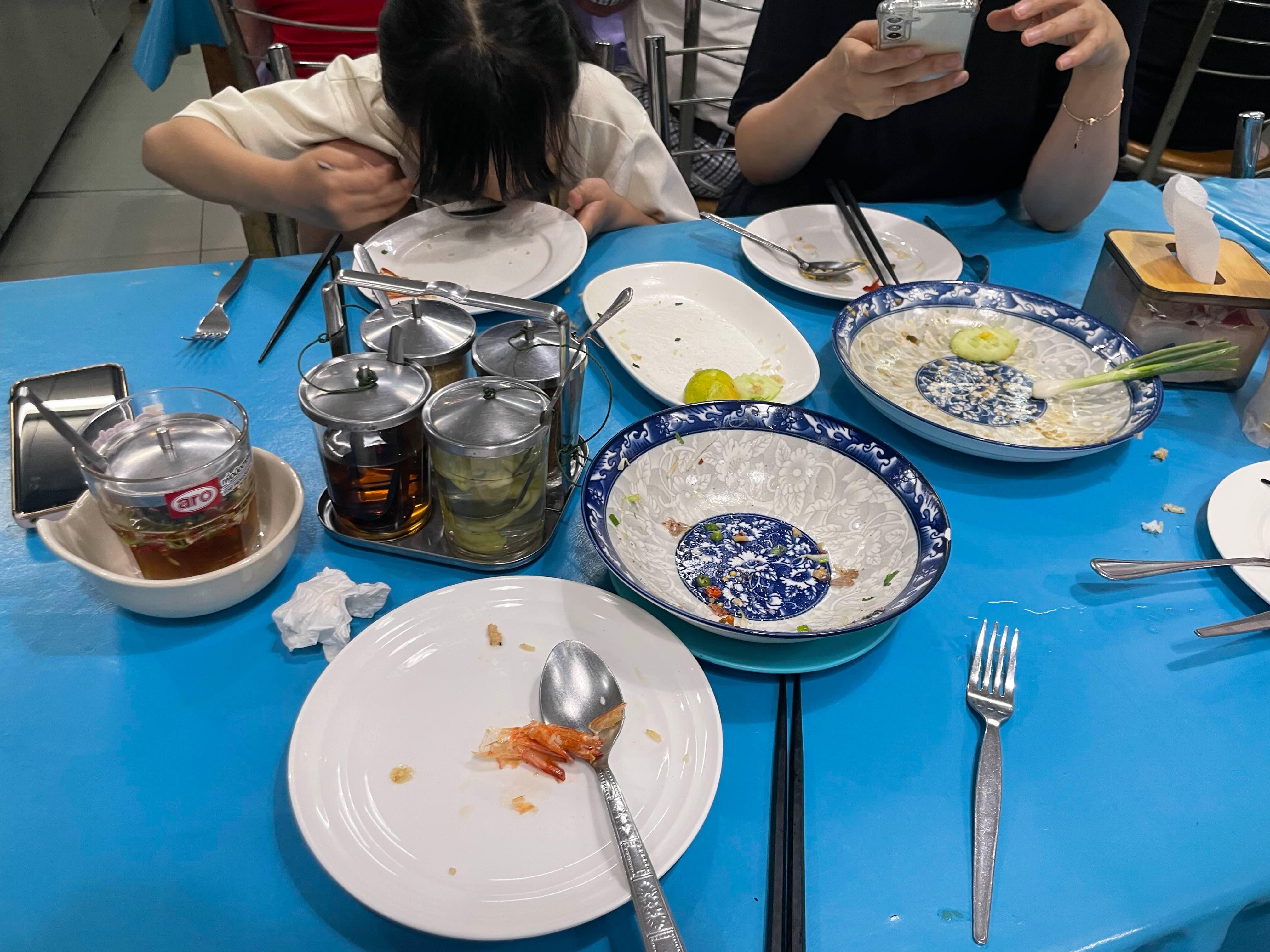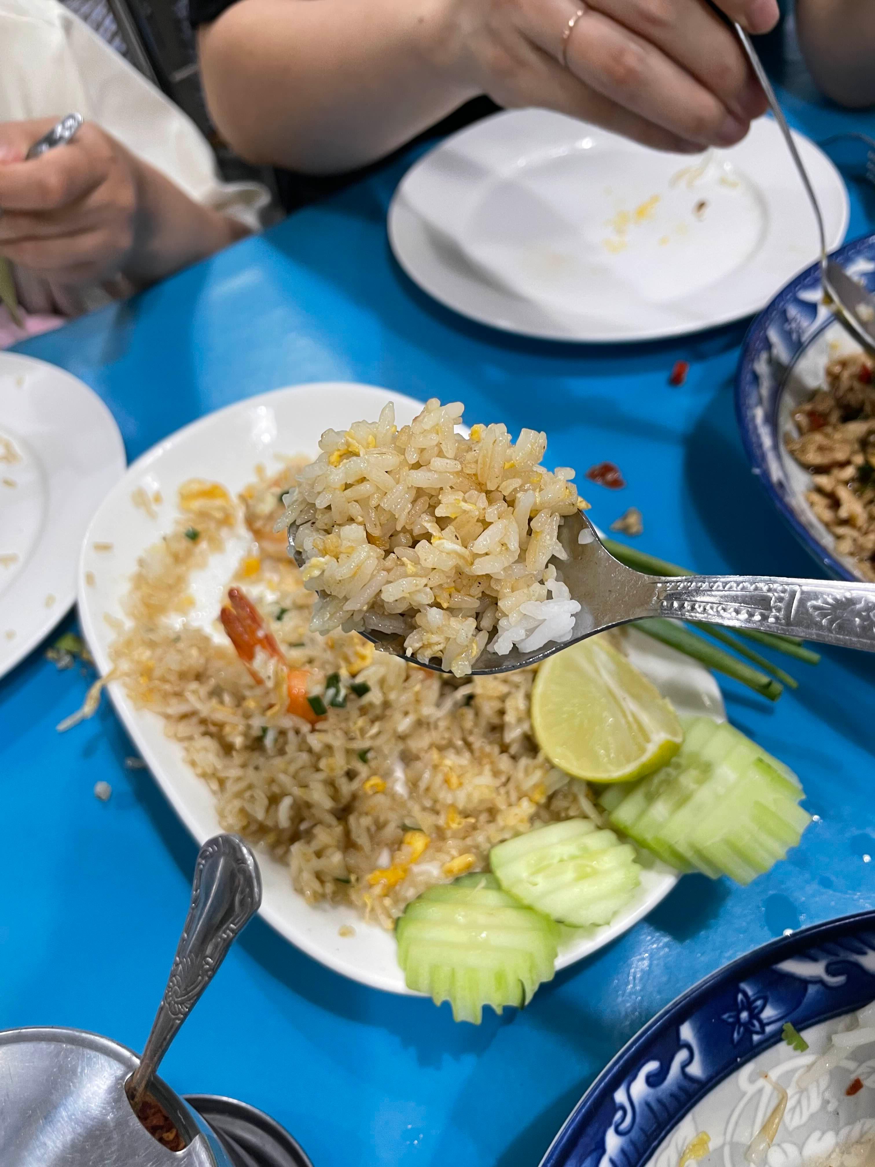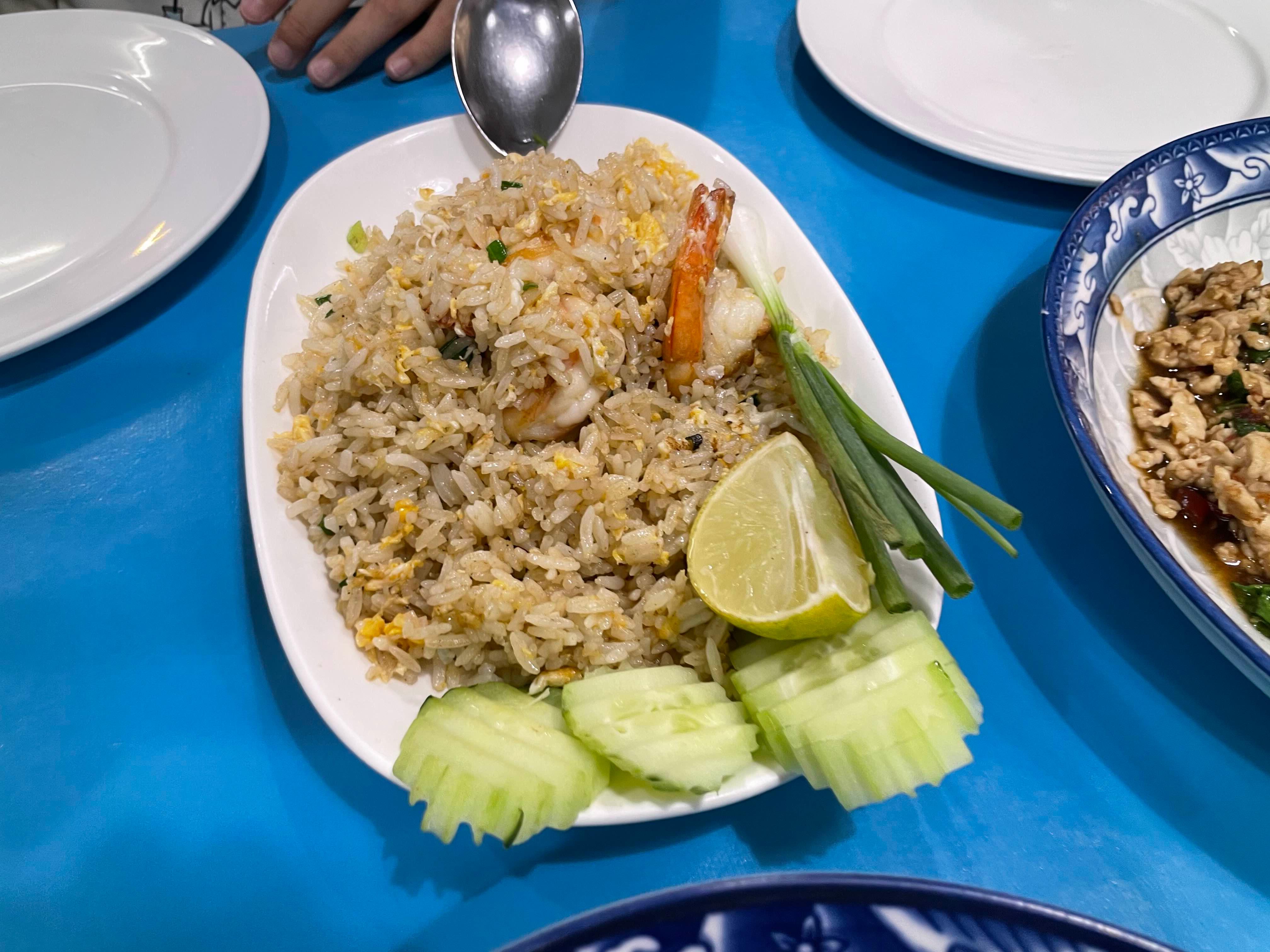 주문한 음식이 다 나왔다. 새우볶음밥!! 맛나서 이 아기 손을 못 대게 한다.