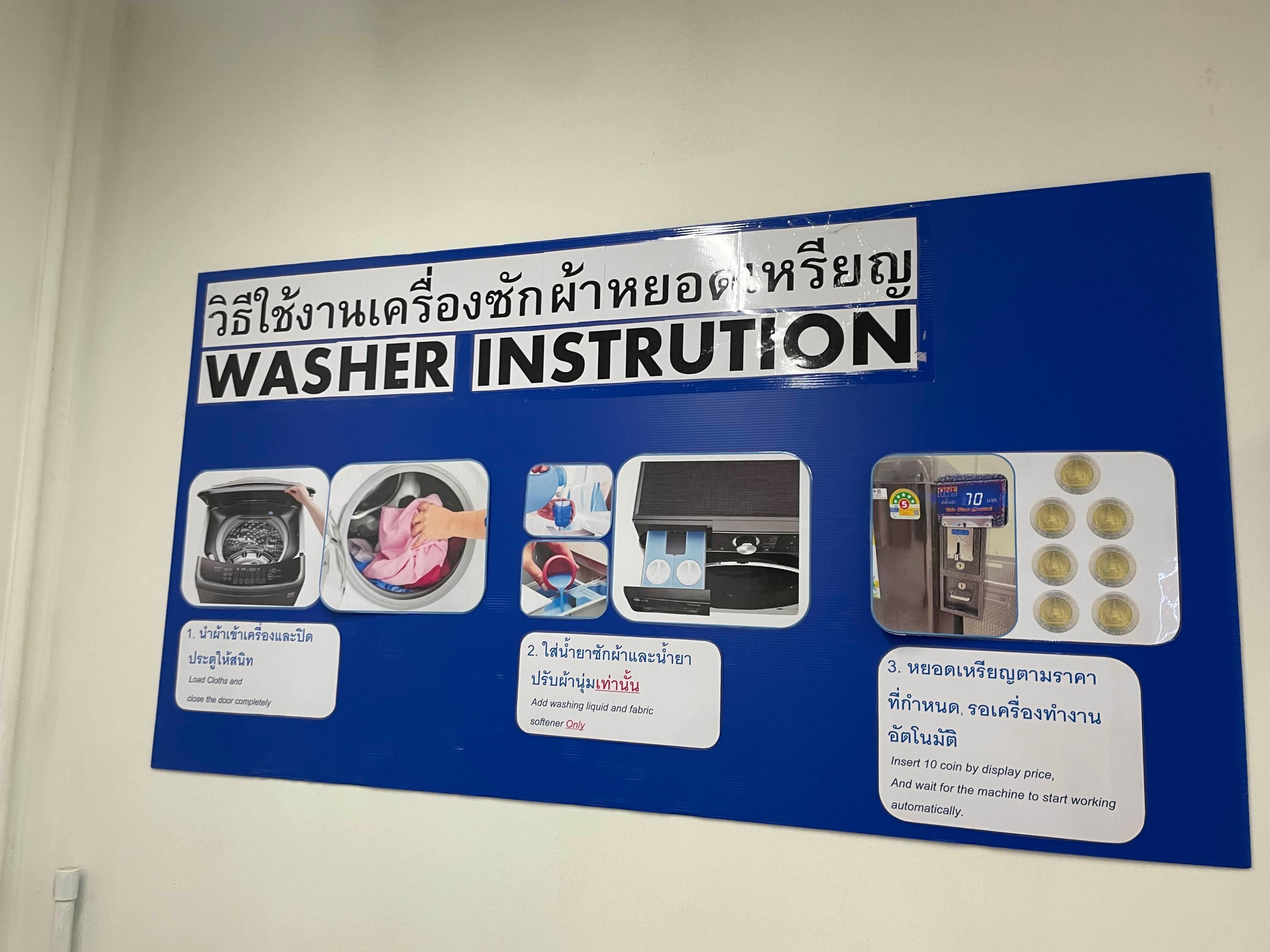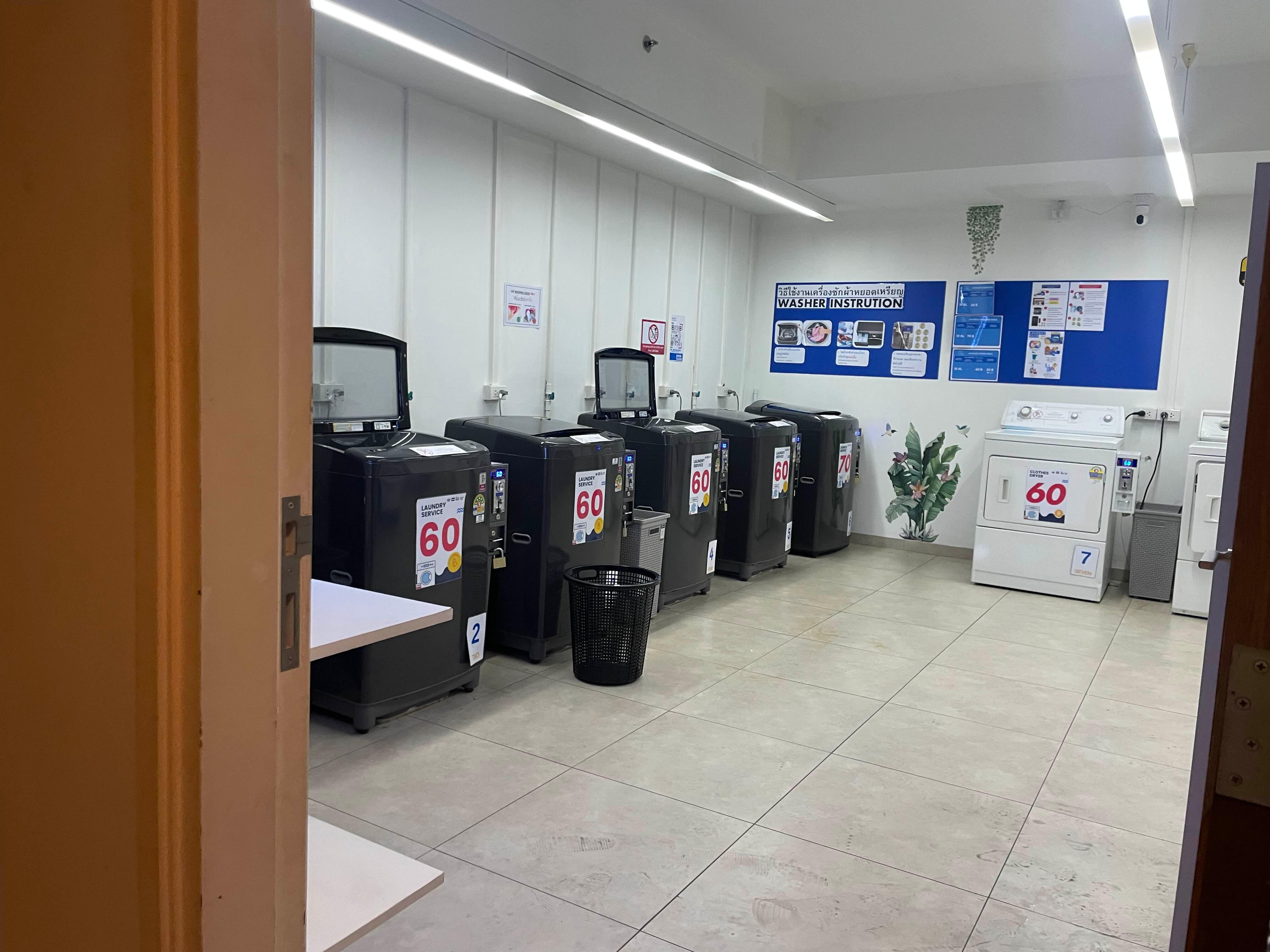 건물 5층인가 공용 세탁실이 있어서 일정금액 대략 60밧 빨래 가능하다.