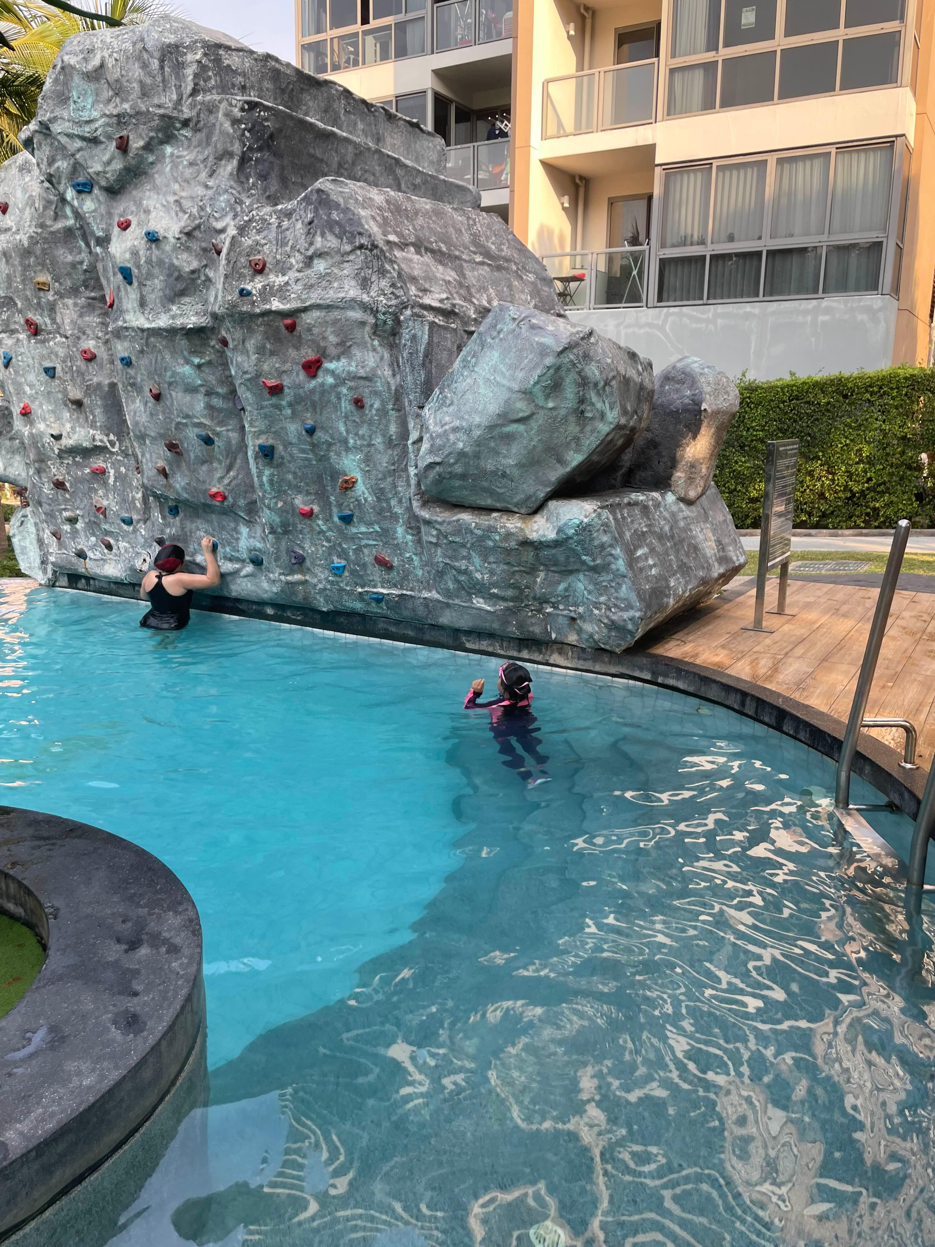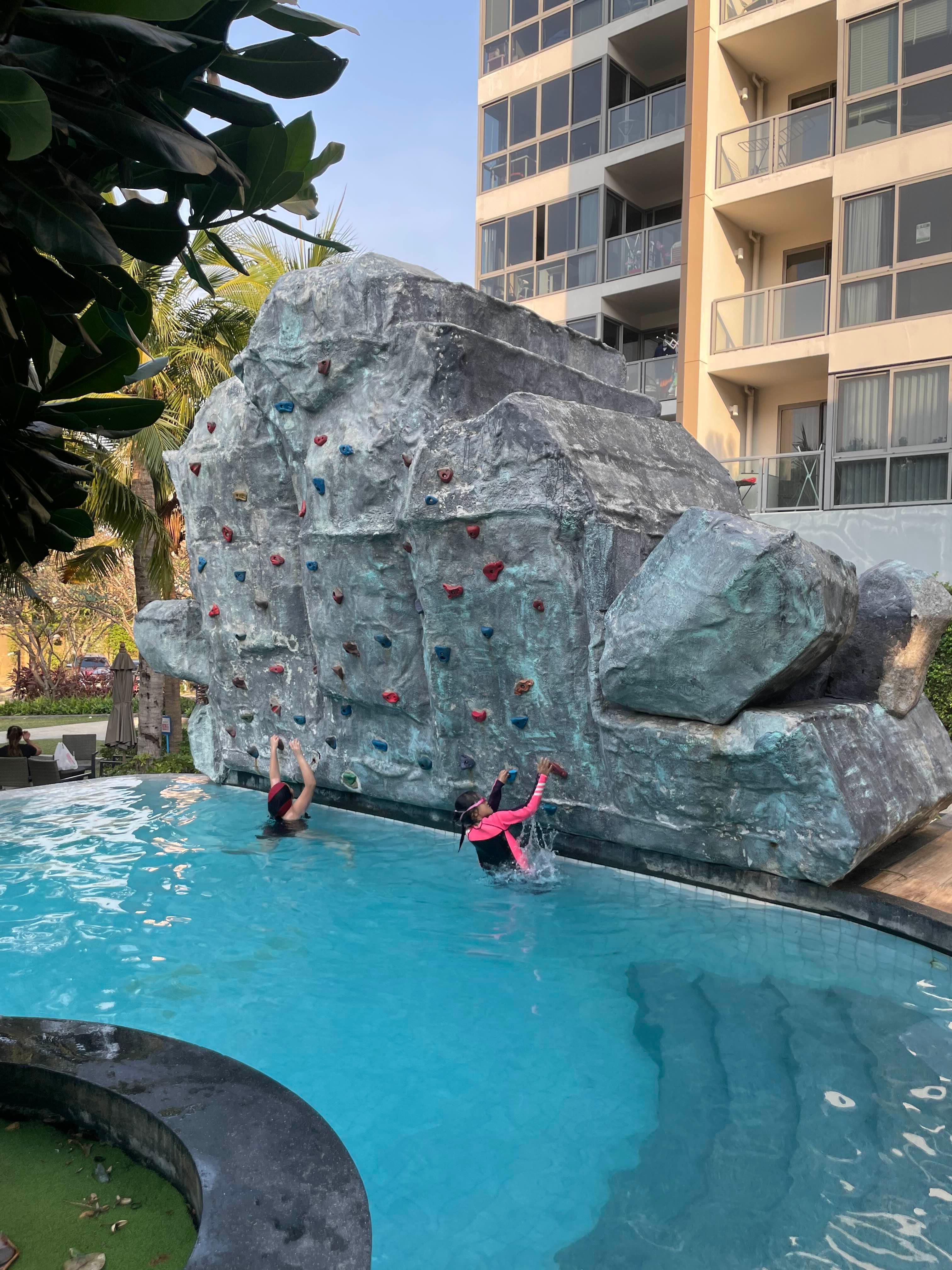 외부 공용시설(수영장, 미끄럼틀, 암벽등반 등)은 태국에서 4개 숙소 중 최고였습니다.
