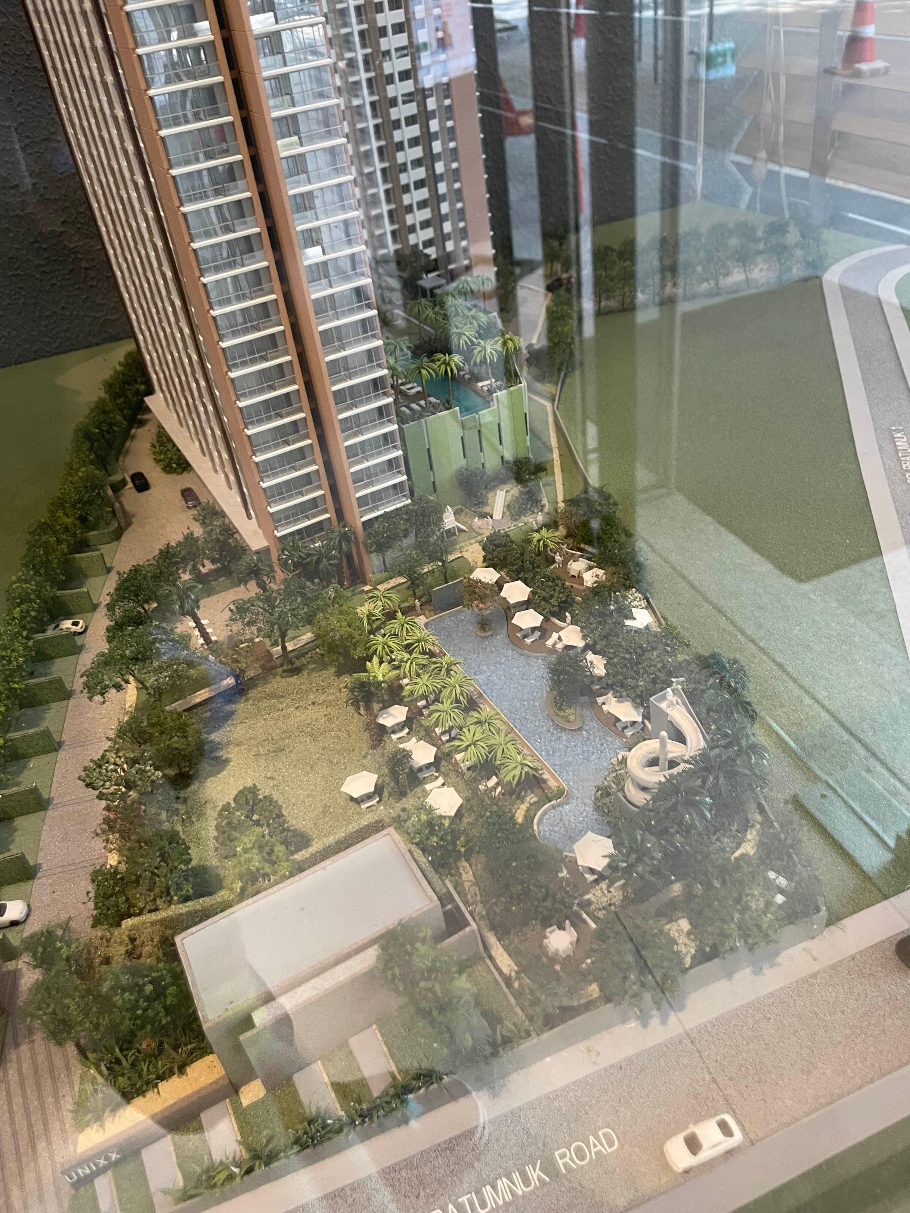 숙소는 아직 분양 중인가.. 분양 관련 건물이나 모형들이 남아 있다.