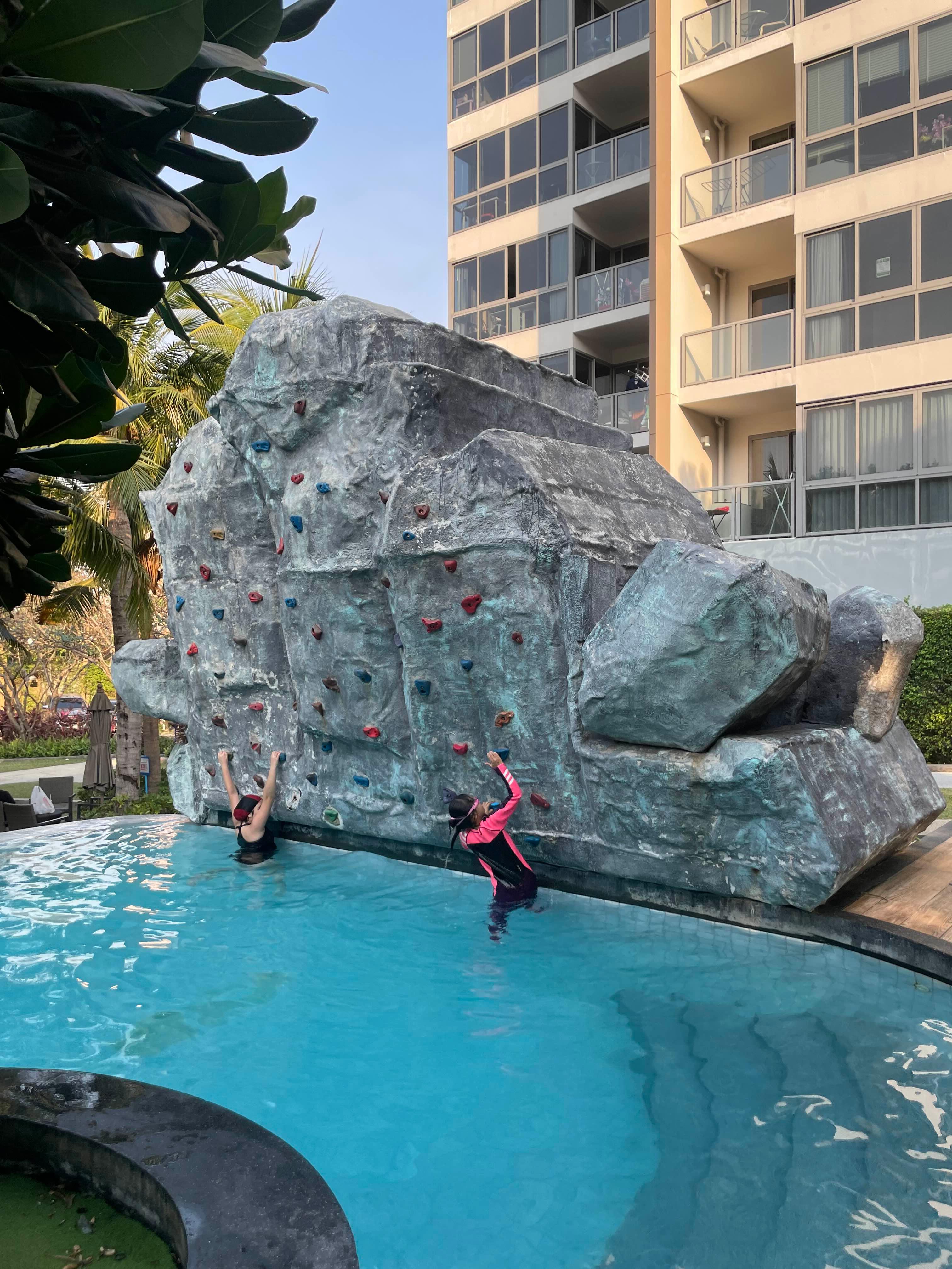 숙소 물놀이 시설의 압벽등반!!