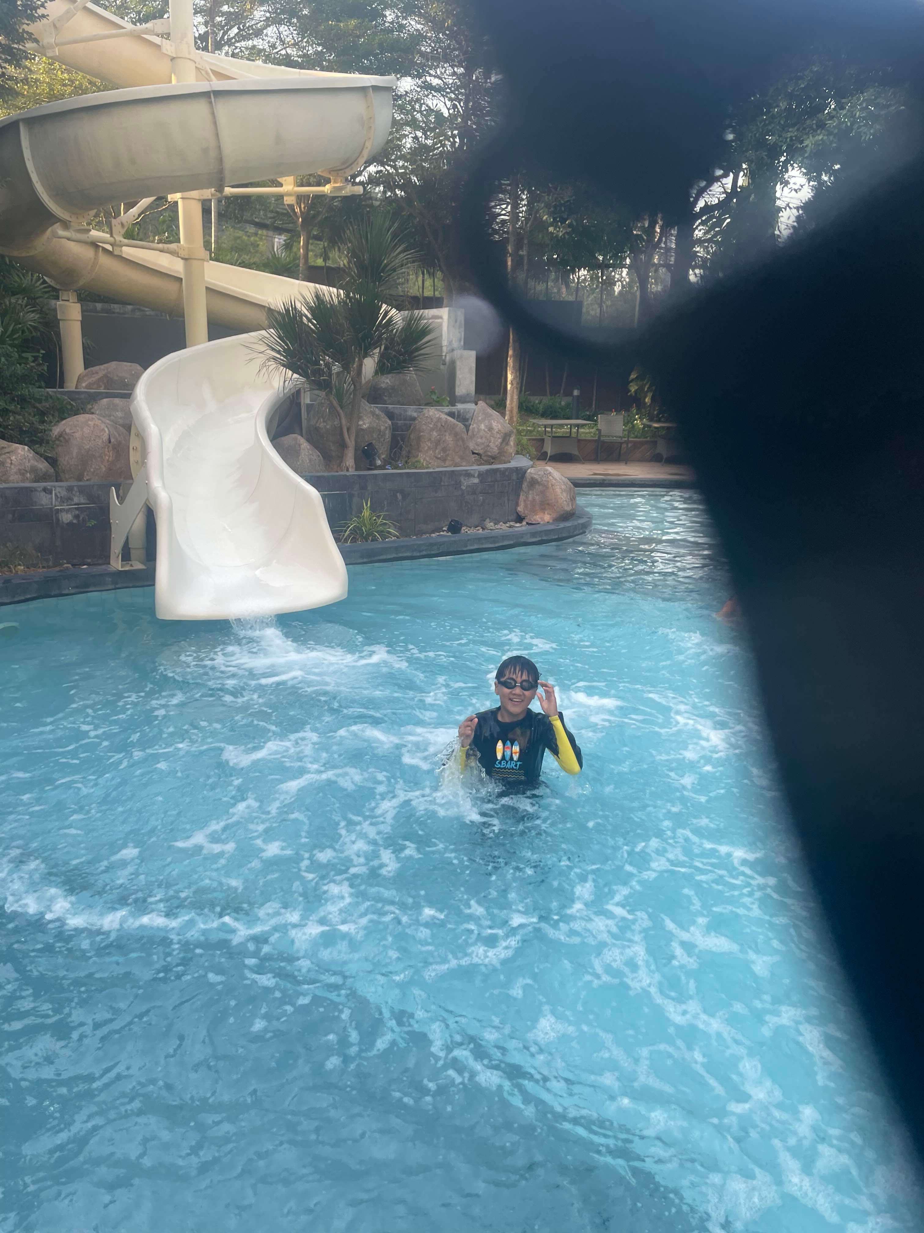 여기 수영장의 하이라이트는 회전 미끄럼틀 그리고 암벽등반!! 참고로 여기 수영장의 가장 깊은 곳 수심이 1.8m라서...