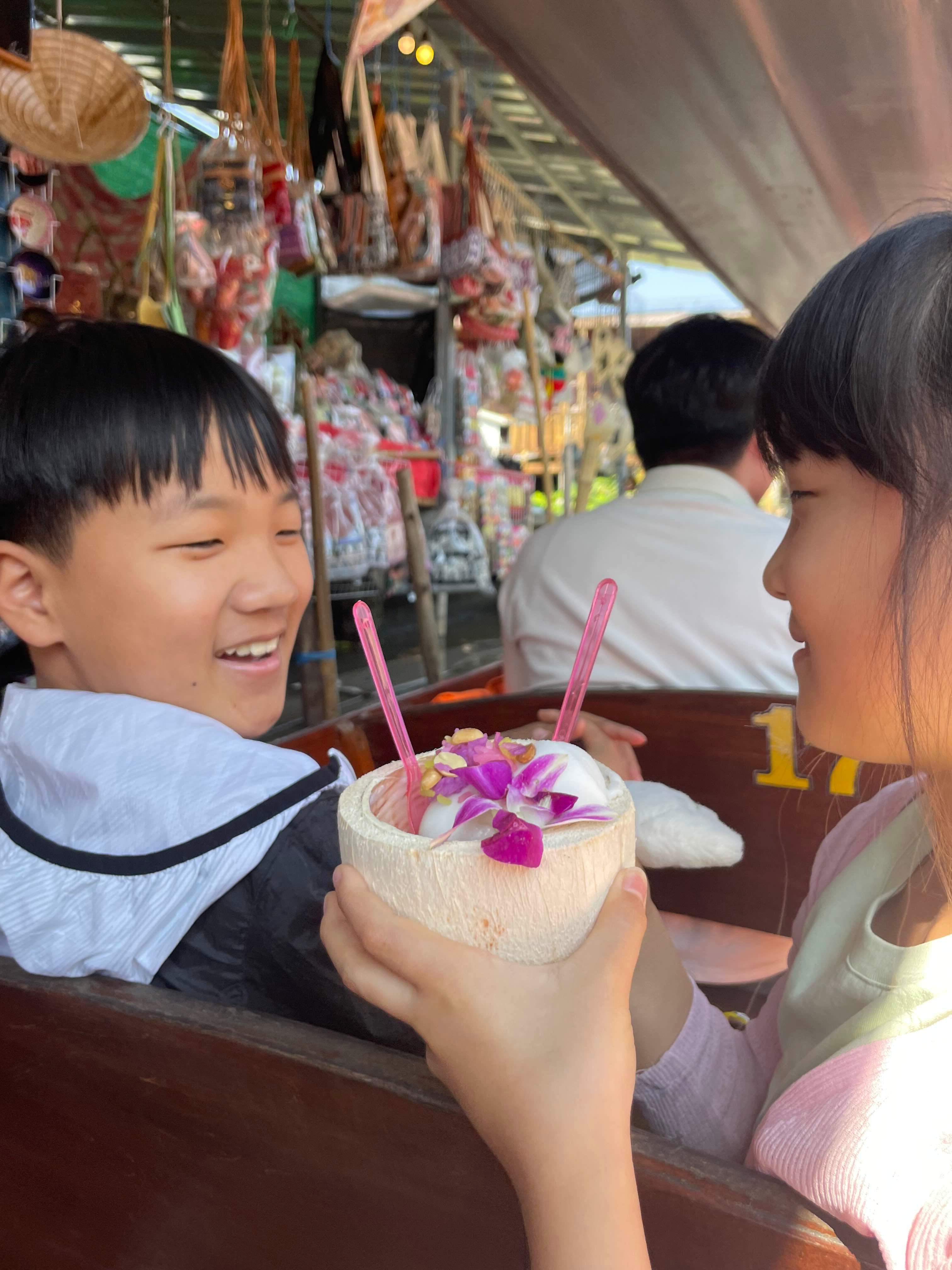 수상시장에서 보트로 이동하며 이것저것 사 먹으면서!! 가격도 괜찮기도 하고, 맛도 좋음~