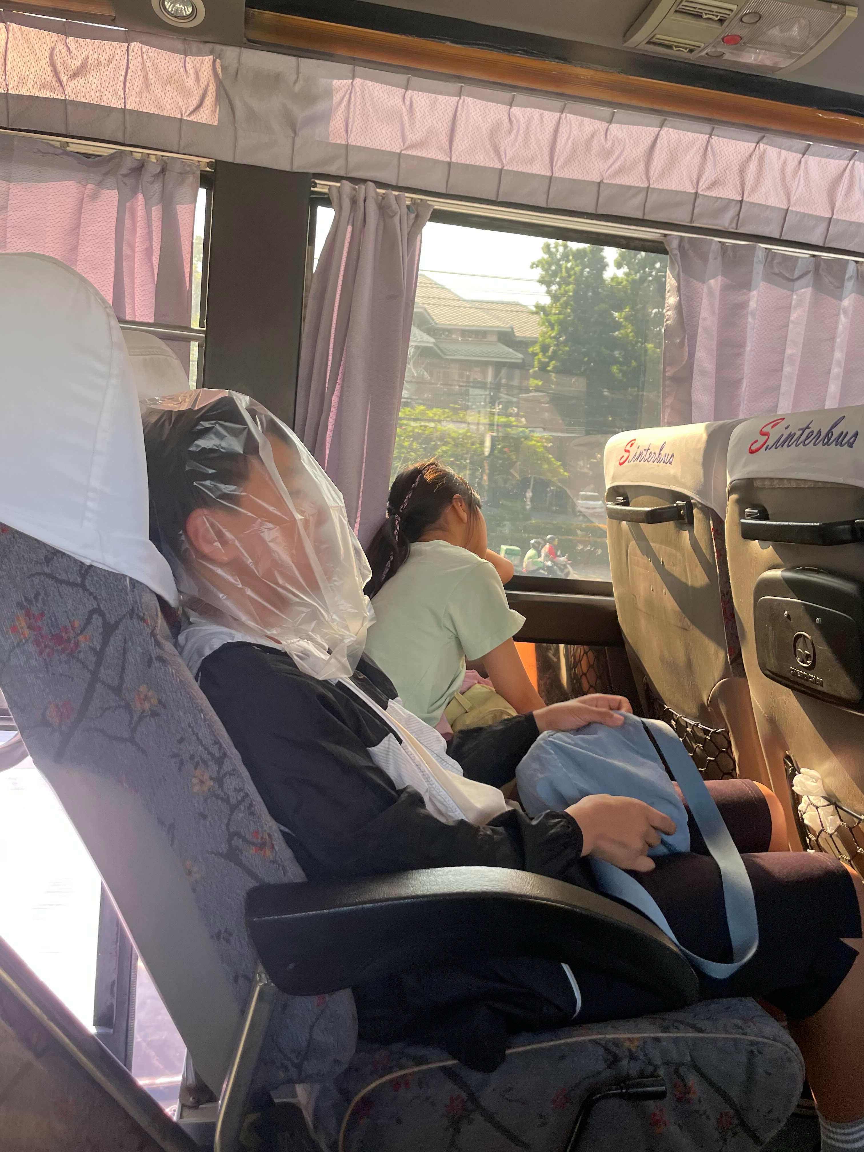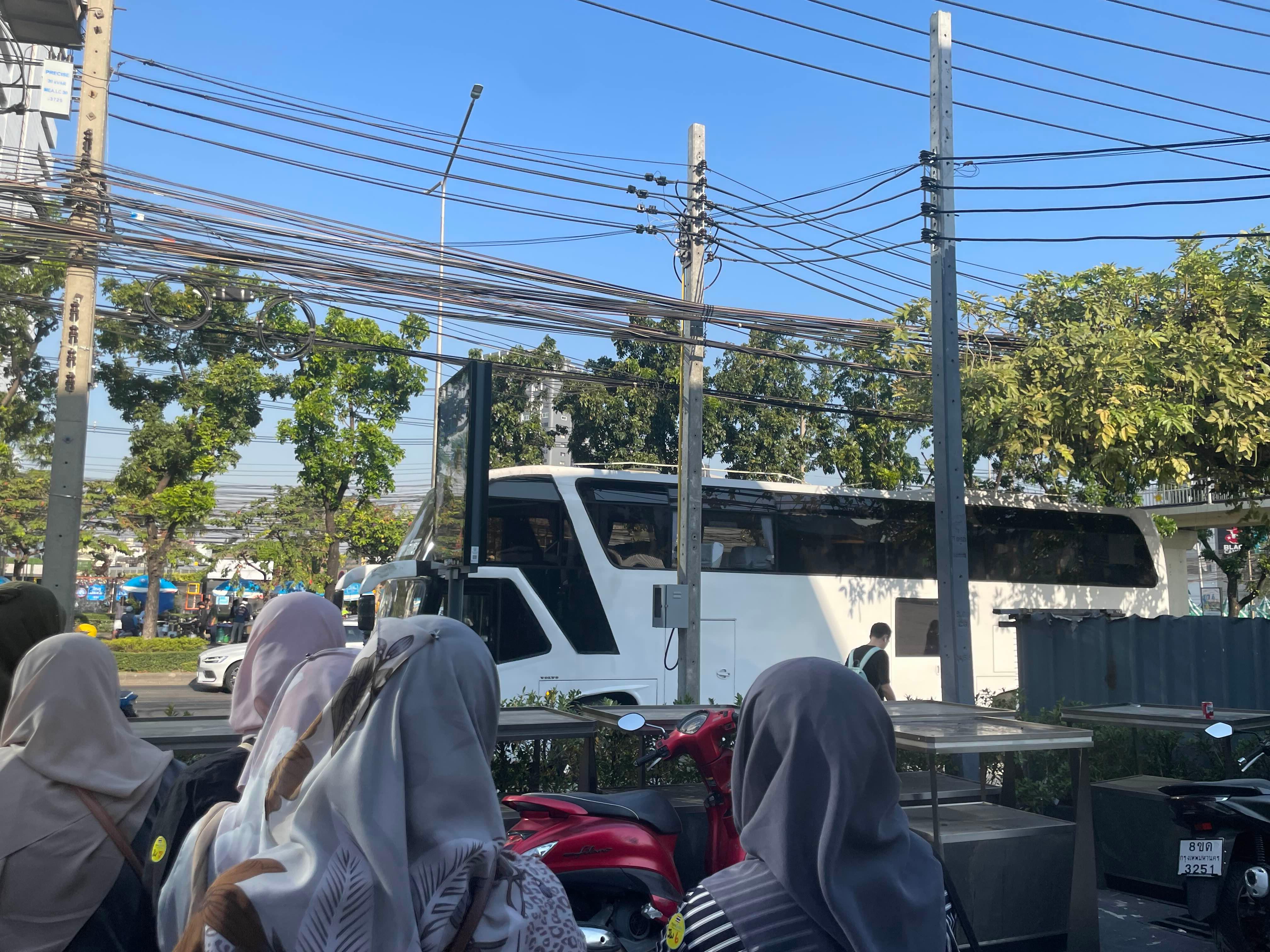 대체 버스는 대략 1시간 정도 후에 도착했다. 하지만!! 버스가 작다. 대형버스가 아니라 소형버스!! 4명 좌석이 없단다. 4명은 다른 대체 교통수단 그랩을 불러주겠다고 하고, 지원자를 찾는다. 우리 가족이 4명인데? 우리가 나가야 하나?ㅎㅎ