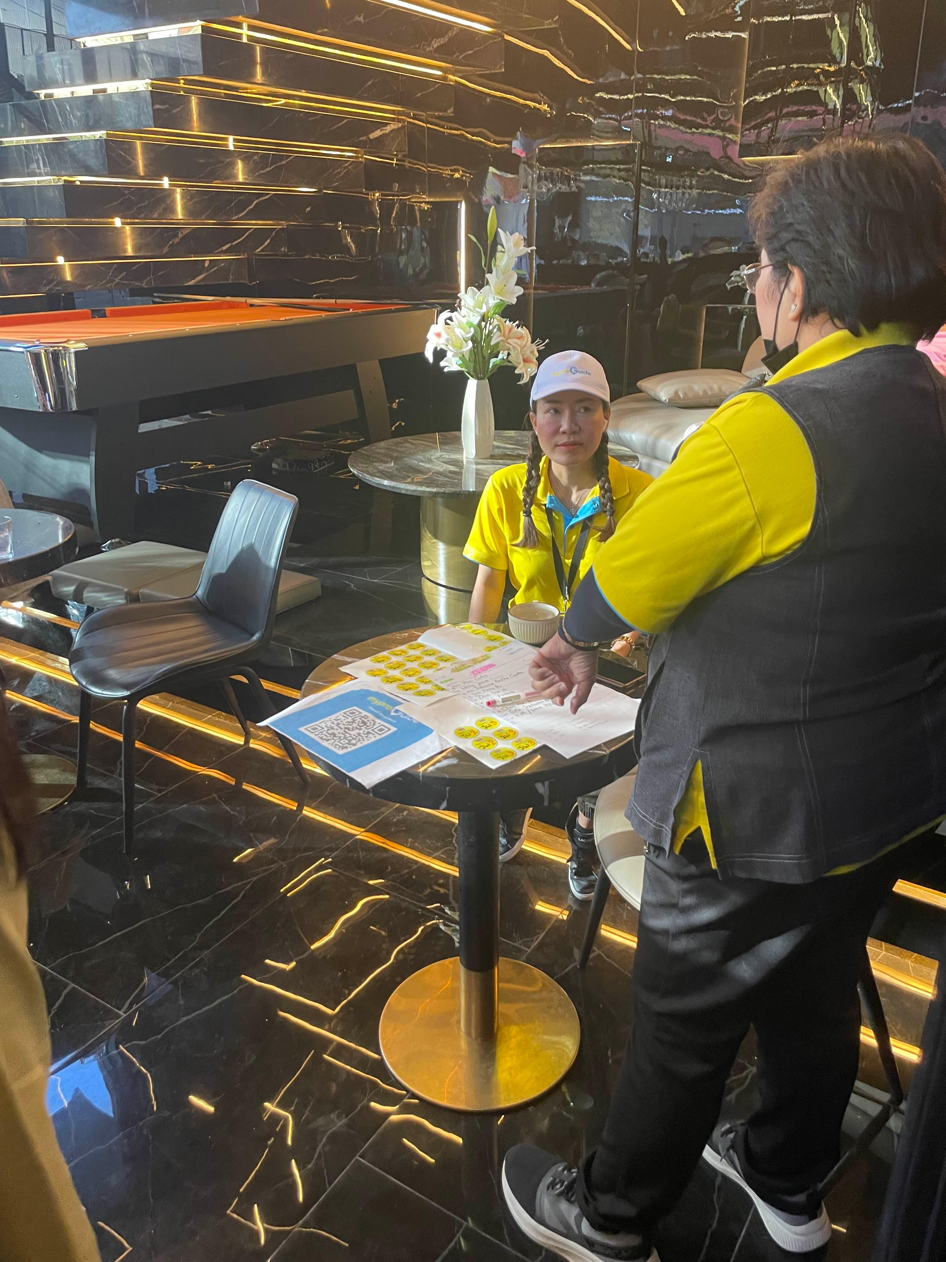 안쪽에 투어예약자 인원을 확인 중이다. 도착했다고 이야기하면, 스티커를 하나씩 나누어 준다. ㅎㅎ