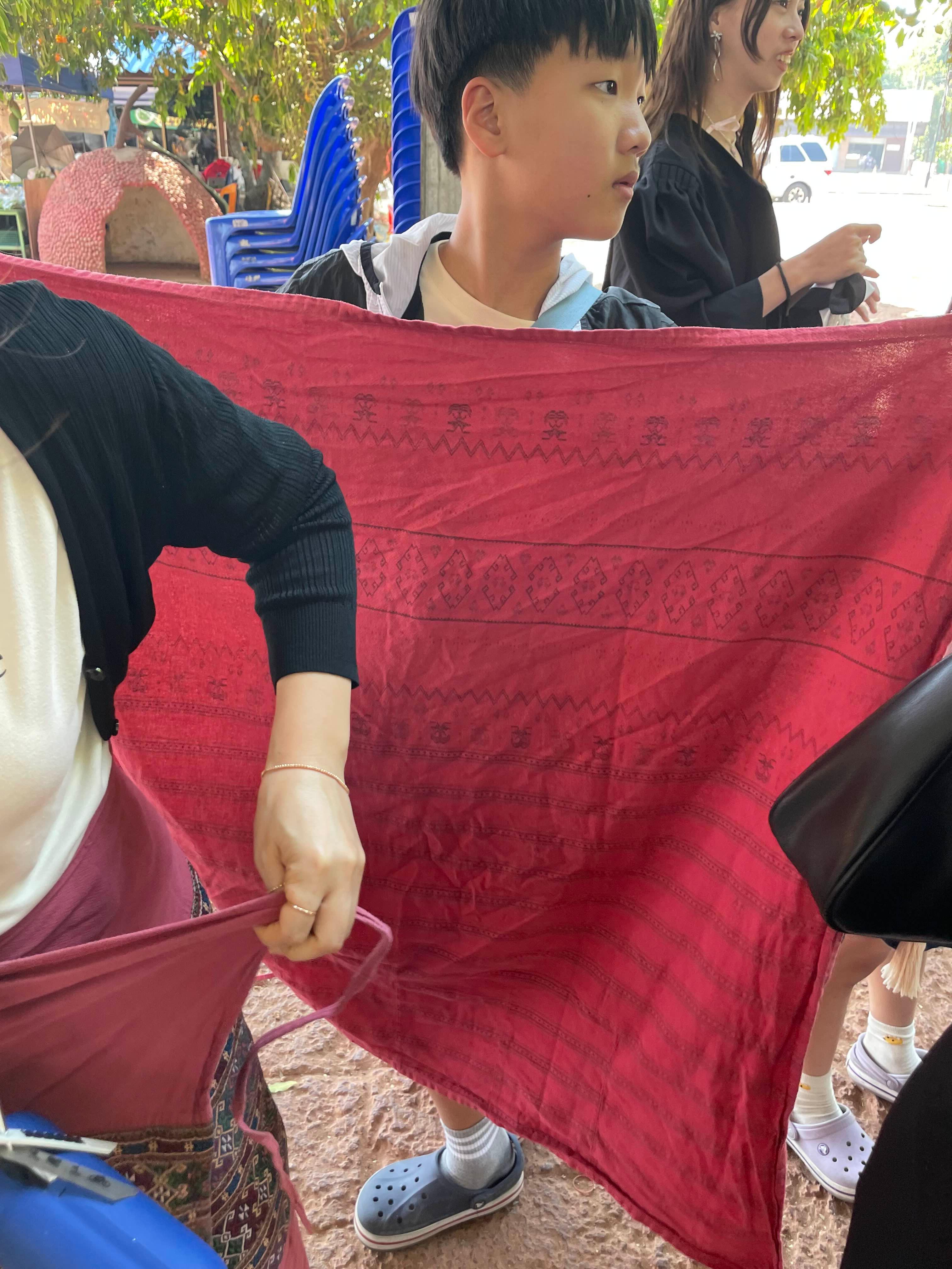 사원에 입장하려면 반바지는 불가하여, 담요?로 반바지 부분을 가려준다.ㅎㅎ