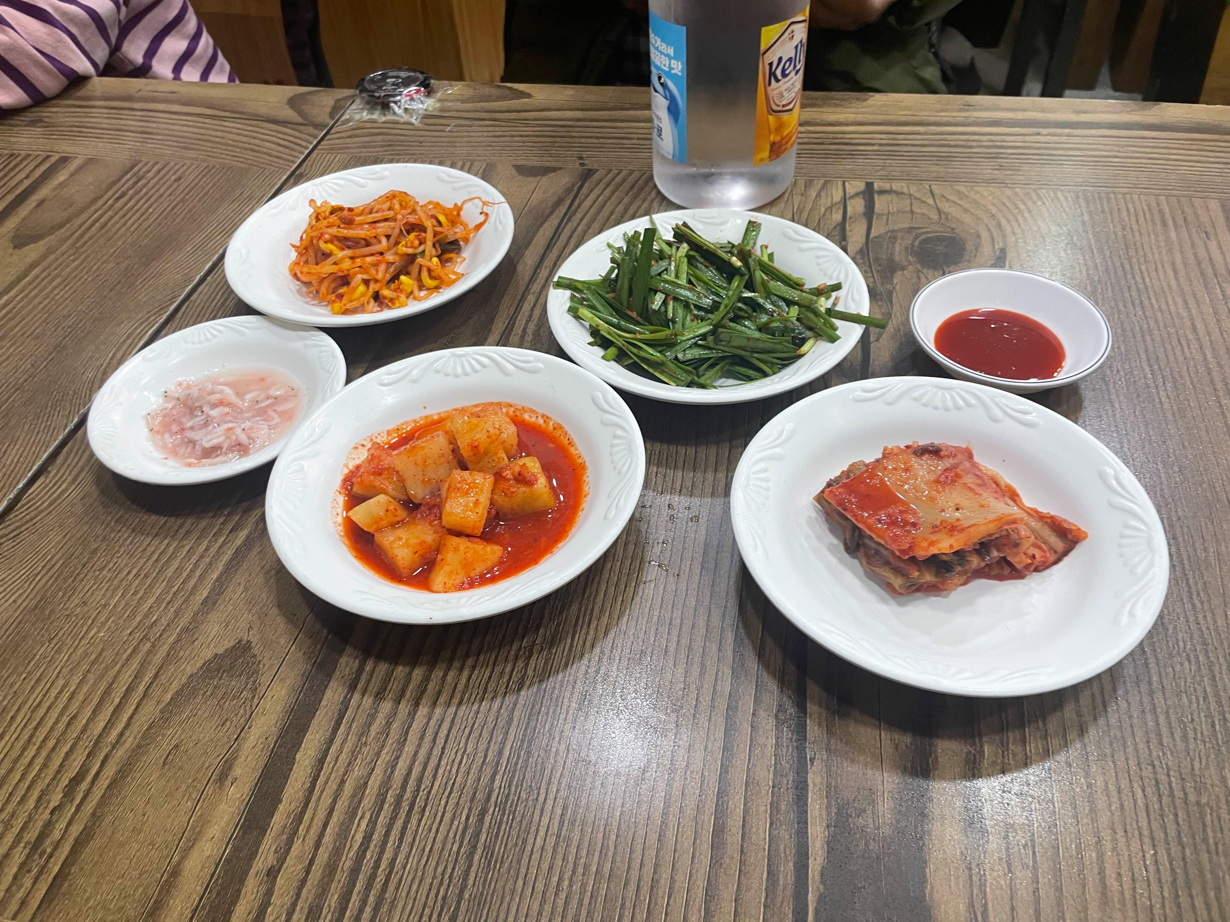 음식을 주문하면! 이렇게 밑반찬이 세팅!