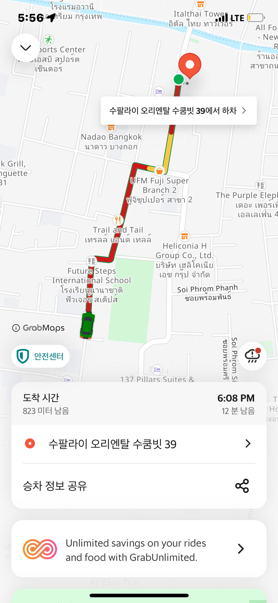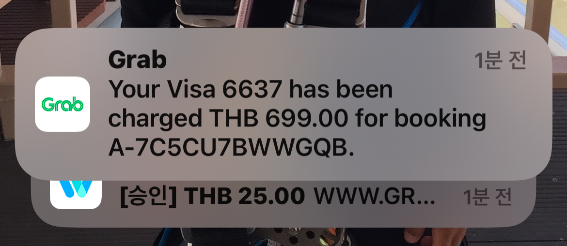 도착하니... 그랩 결제완료 문자가.... 빠른 게 돈이 나가고 있음;;;