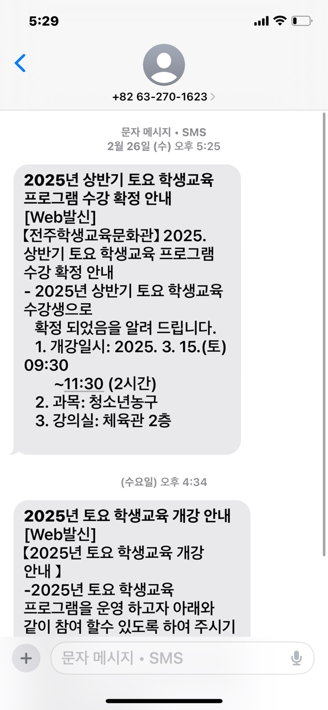 접수가 완료되고... 대략 1주일 정도 후!! 수강생으로 확정되었다는 안내문자가 왔다.