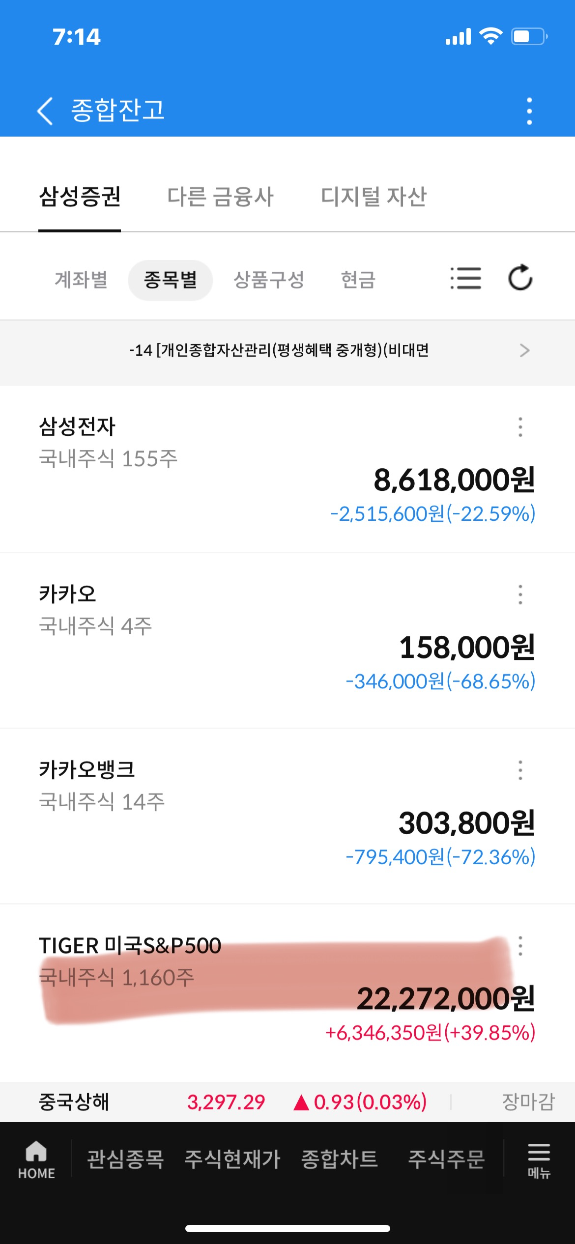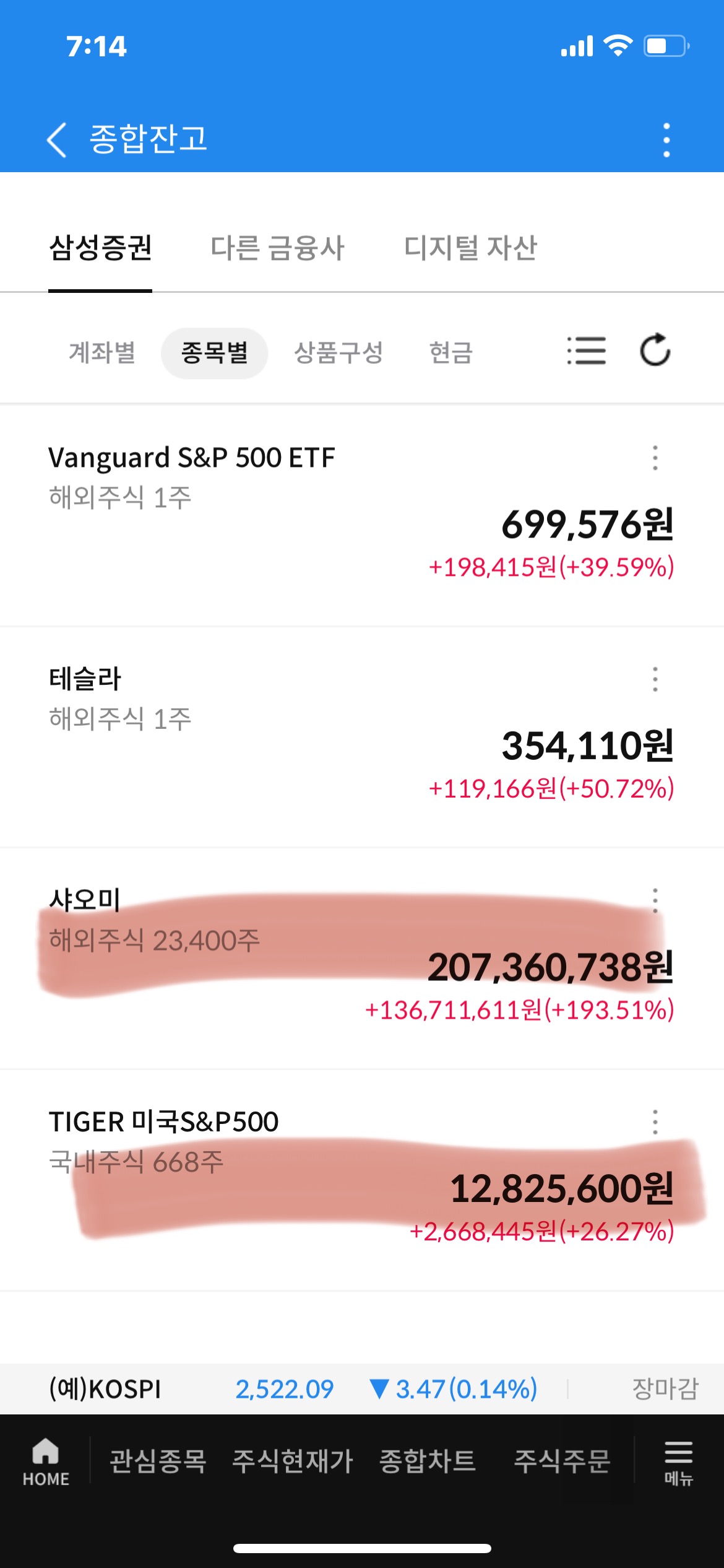 - 23,400주, 대략 7천만 원 정도 매수했는데, 현재 207,360,738원으로, 수익률이 가장 높은 종목이다.