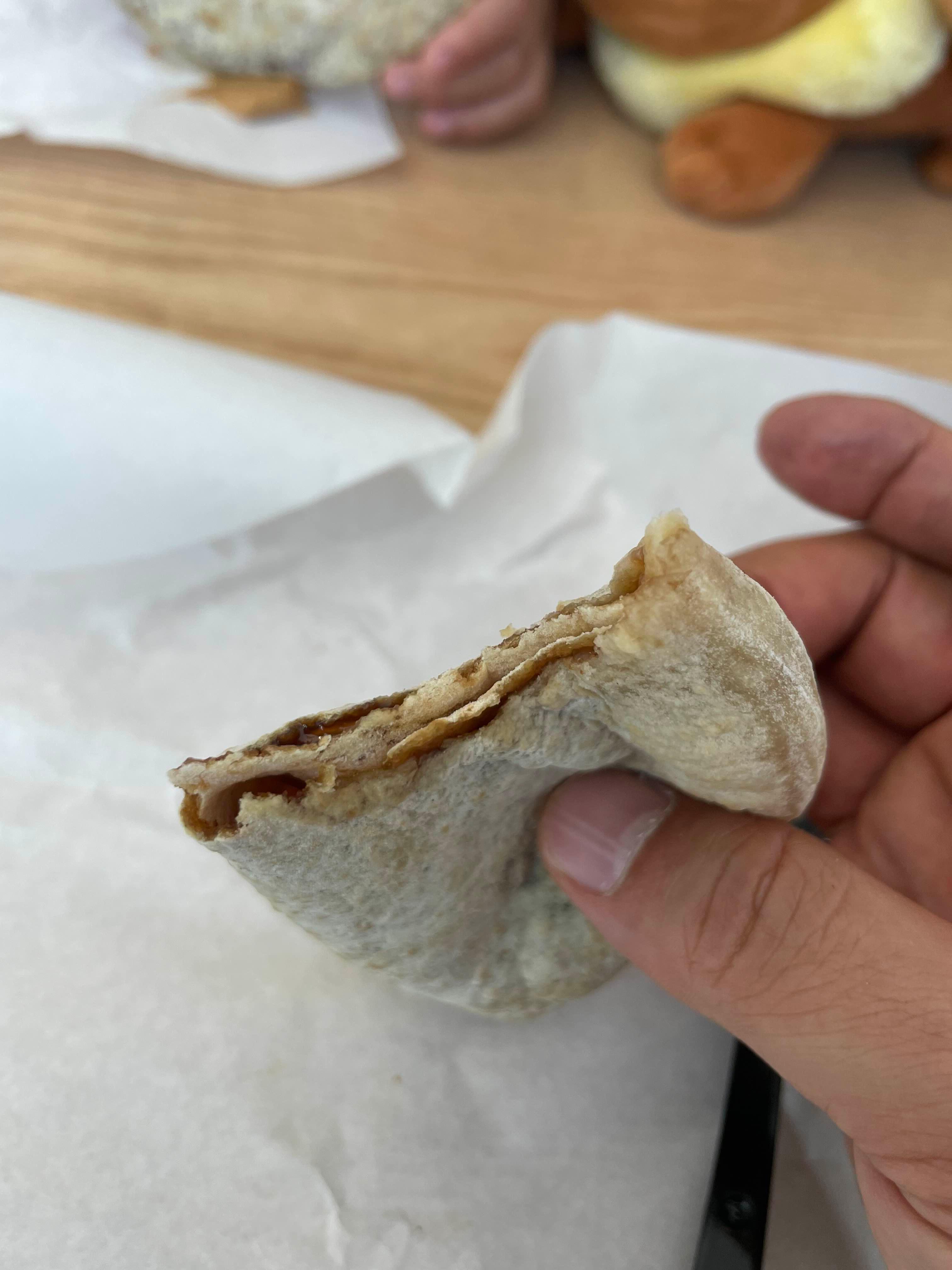 한입 베어 먹으니.... 호떡이 상당히 얇더군요.
