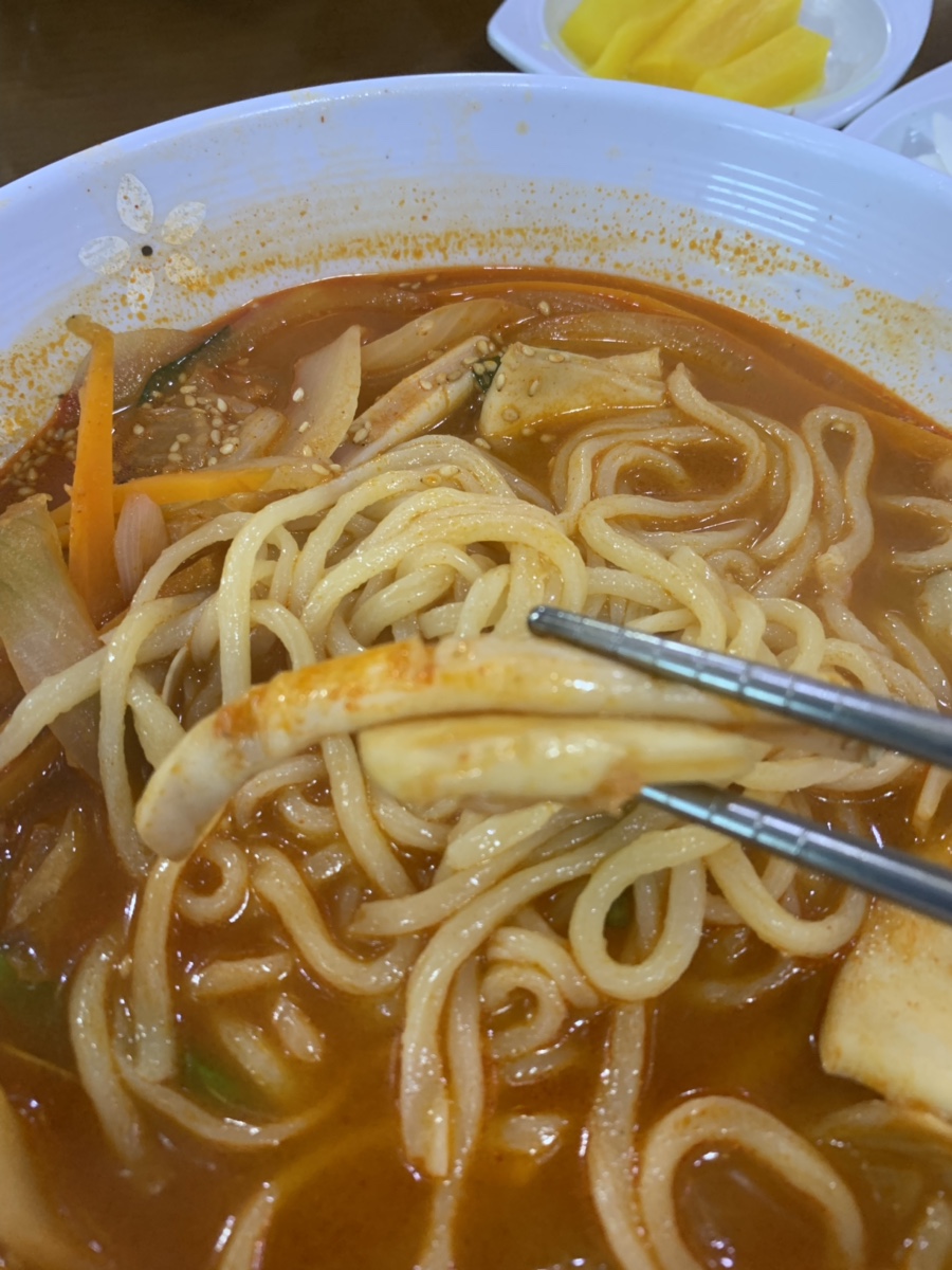 주문하고 밑반찬으로 깍두기, 양파, 배추김치와 춘장이 나옵니다. 그리고 이어서 짜장면이 나왔습니다. 짜장면은 중식당에서 일반적으로 맛볼 수 있는 짜장 소스로 가격은 6,000원으로 무난한 맛이었습니다. 그리고, 기다리고 기다리던 짬뽕!! 일단 국물은 얼큰하며 개운하였습니다. 평소에 찾고 있었던 그 짬뽕 국물이었네요. 짬뽕 건더기는 오징어, 양파, 바지락이 조금씩 들어있었고 면발 식감이 좋았습니다. 가격은 8,000원으로 약간 비싼 느낌이었으나 개운한 국물이 좋았네요.
