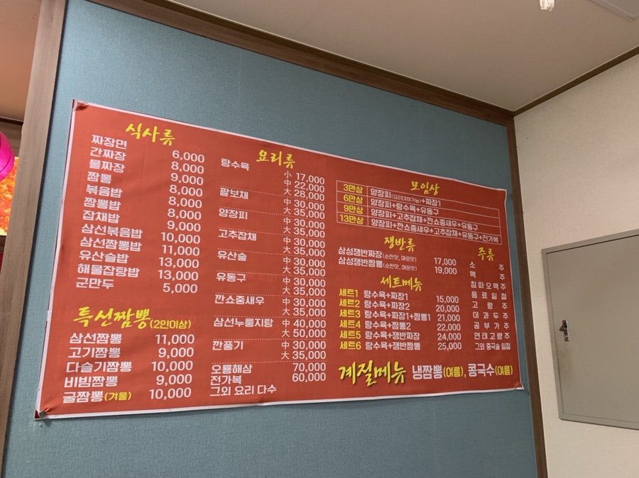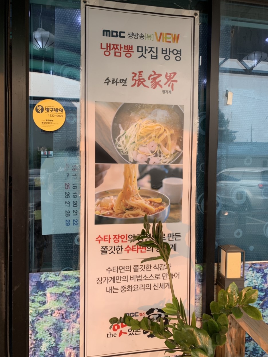 식당 앞에는 MBC 생방송 뷰에 "냉짬뽕 맛집"으로 방영이 되었다는 문구가 보이네요. 수타 장인의 정성으로 만든 쫄깃한 수타면의 장가계!!! 수타 장인이면 KBS 생활의 달인에 나오셔야 할 것 같은데.ㅎㅎㅎ 아직 나오지는 않았나 봅니다. 식당에 들어가 주문하려 메뉴판을 확인하니.... 메뉴가 많이 있습니다. 짜장/짬뽕/탕수육 하나씩 주문하려 했지만.... 짬뽕 종류도(삼선, 고기, 다슬기, 비빔, 굴 등) 많이 있네요. 이렇게 메뉴가 많은 식당은 맛이 별로인데?라는 생각이 들었지만!!! 얼큰한 무언가 생각이 나서 짬뽕은 일반 짬뽕으로 그리고 짜장과 탕수육 하나씩 주문했습니다.