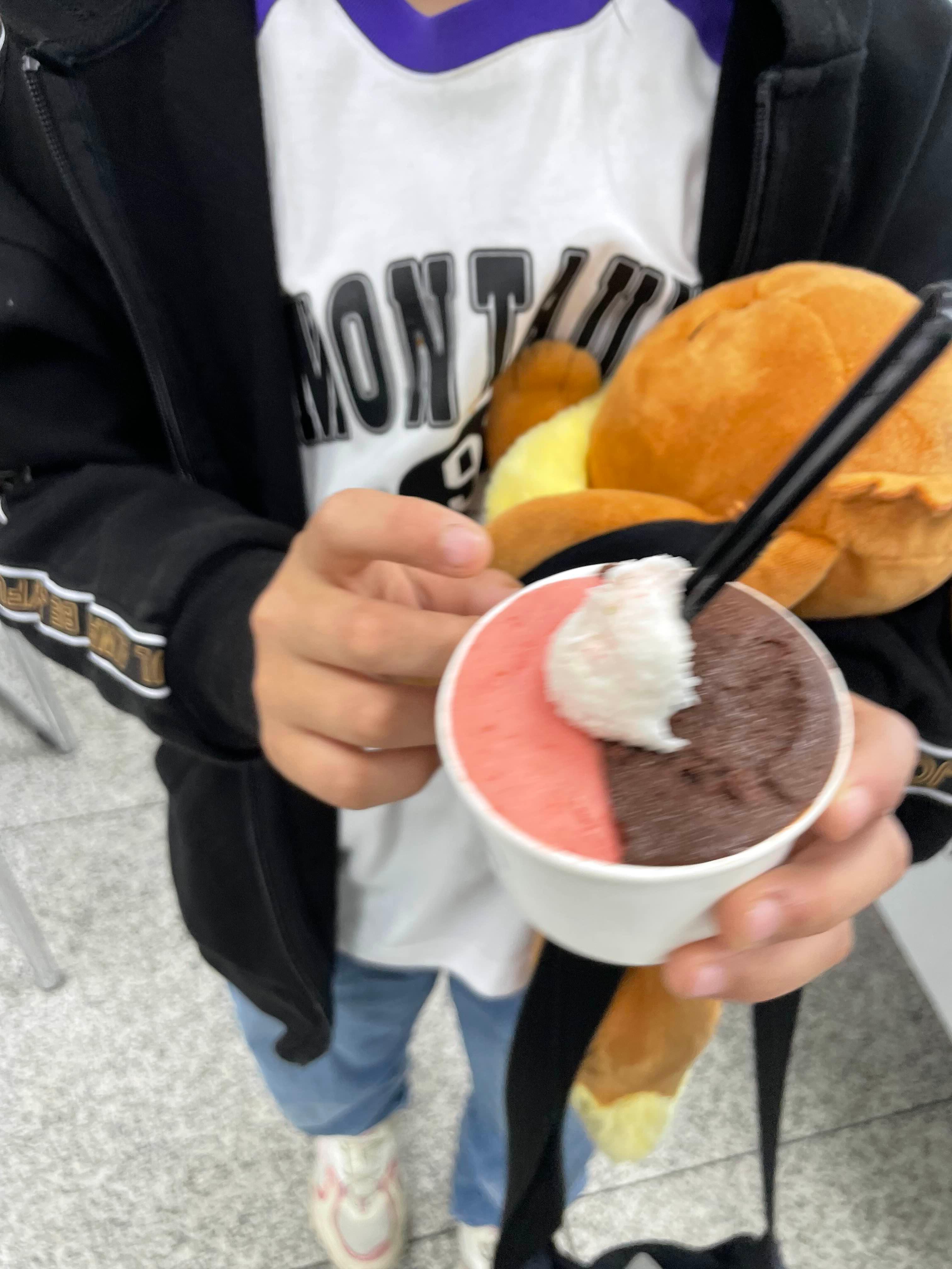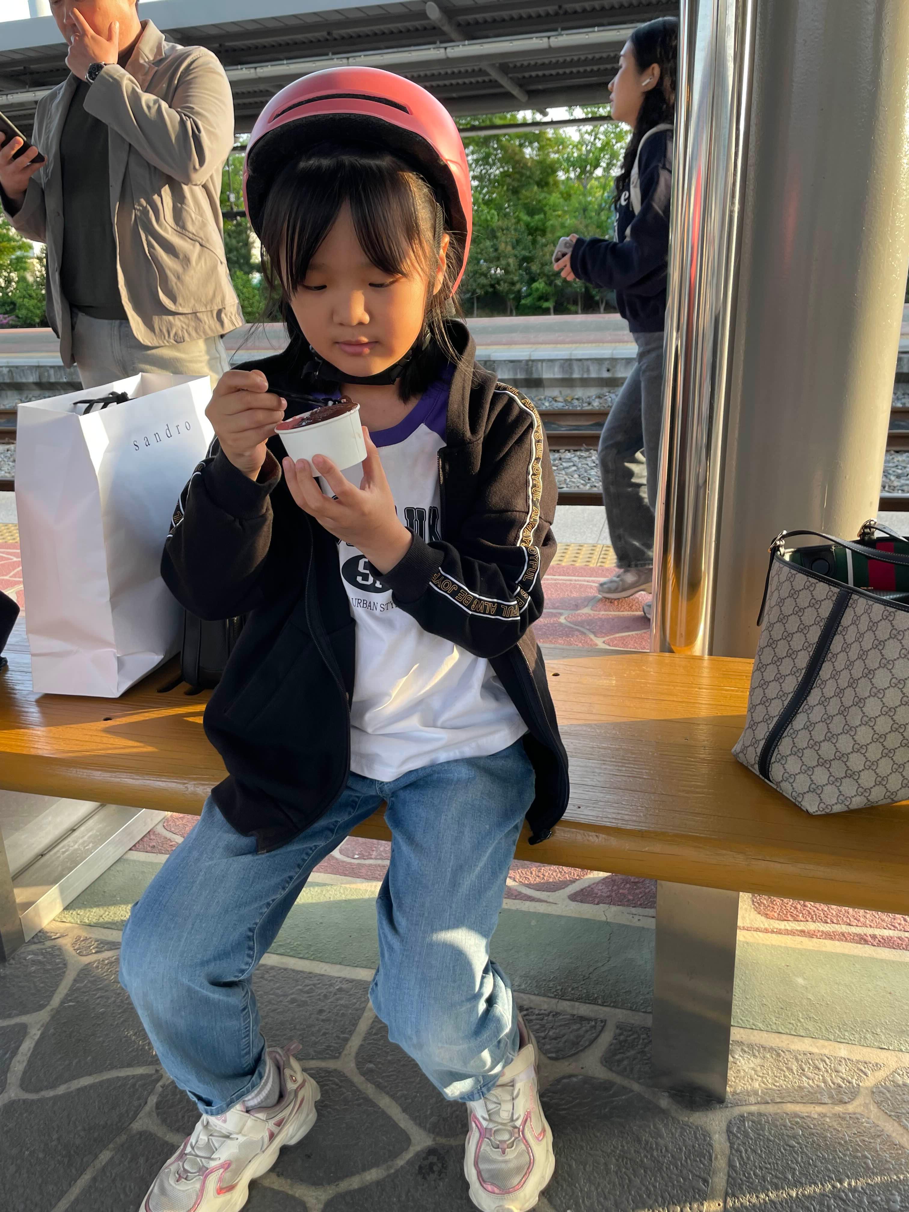 아이스크림을 구입해서... 열차릴 기다리며 맛보기!!