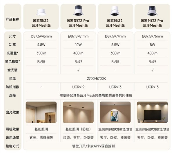 Mijia Downlight 2 Pro의 출력은 10W이고, Mijia Spotlight 2 Pro의 출력은 8W, 광속은 400lm, 연색지수는 Ra 97입니다.