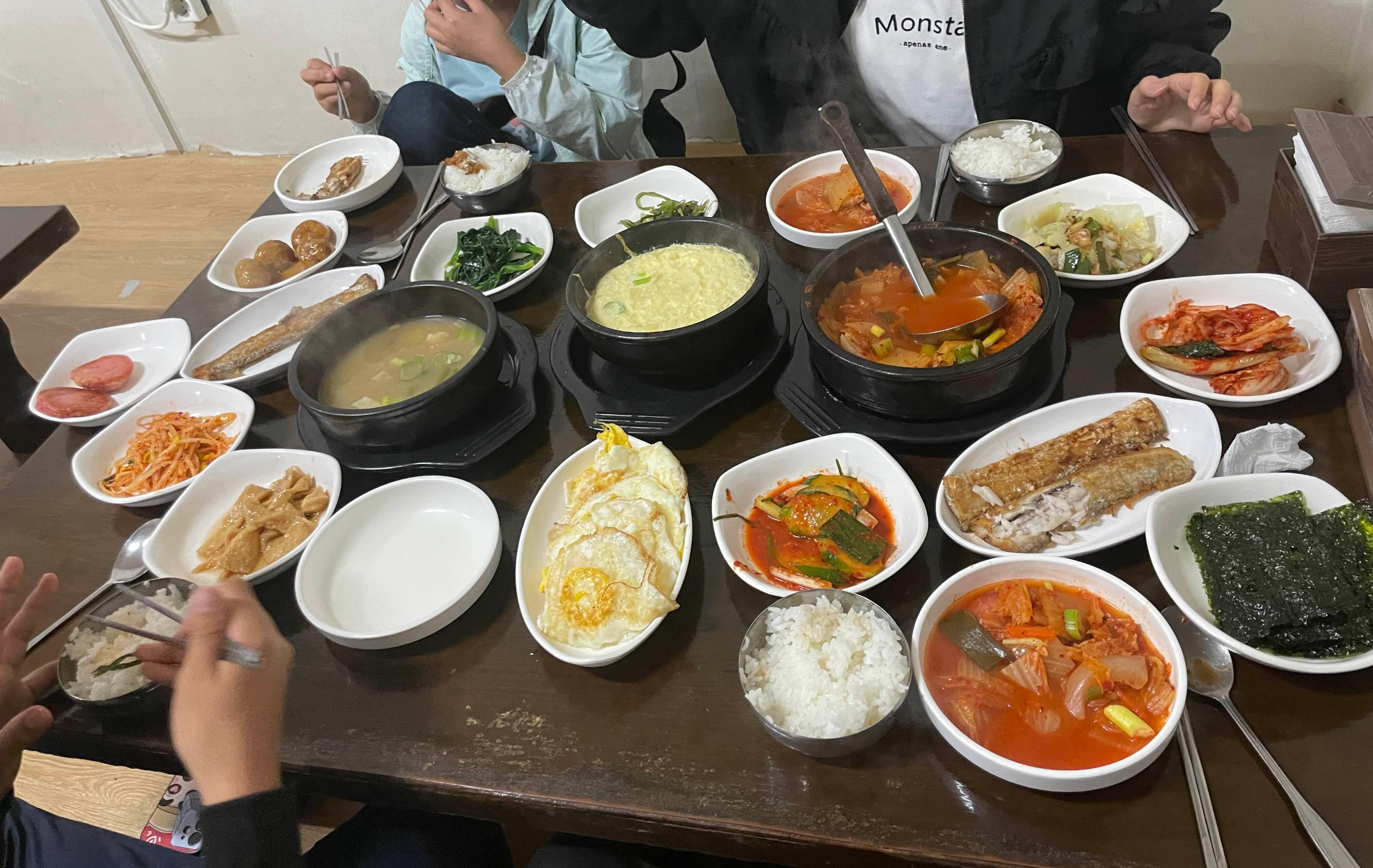 2인상에는 김치찌개, 3인상에는 김치찌개+된장찌개, 4인상에는 김치찌개+된장찌개 그리고 달걀찜!ㅎㅎ