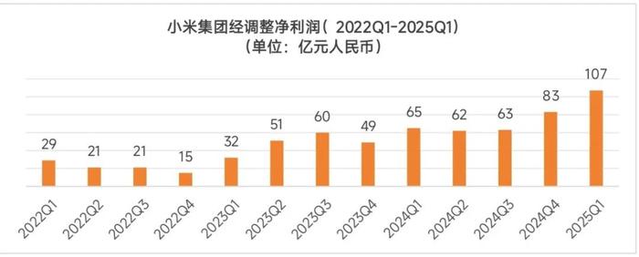 이 분기에 샤오미는 1,113억 위안의 영업 수익을 달성했으며, 이는 전년 대비 47.4%나 급증한 수치입니다. 조정 순이익은 107억 위안으로 처음으로 100억 위안을 돌파했고, 전년 대비 64.5% 증가했는데, 두 수치 모두 예상치를 크게 뛰어넘었습니다.