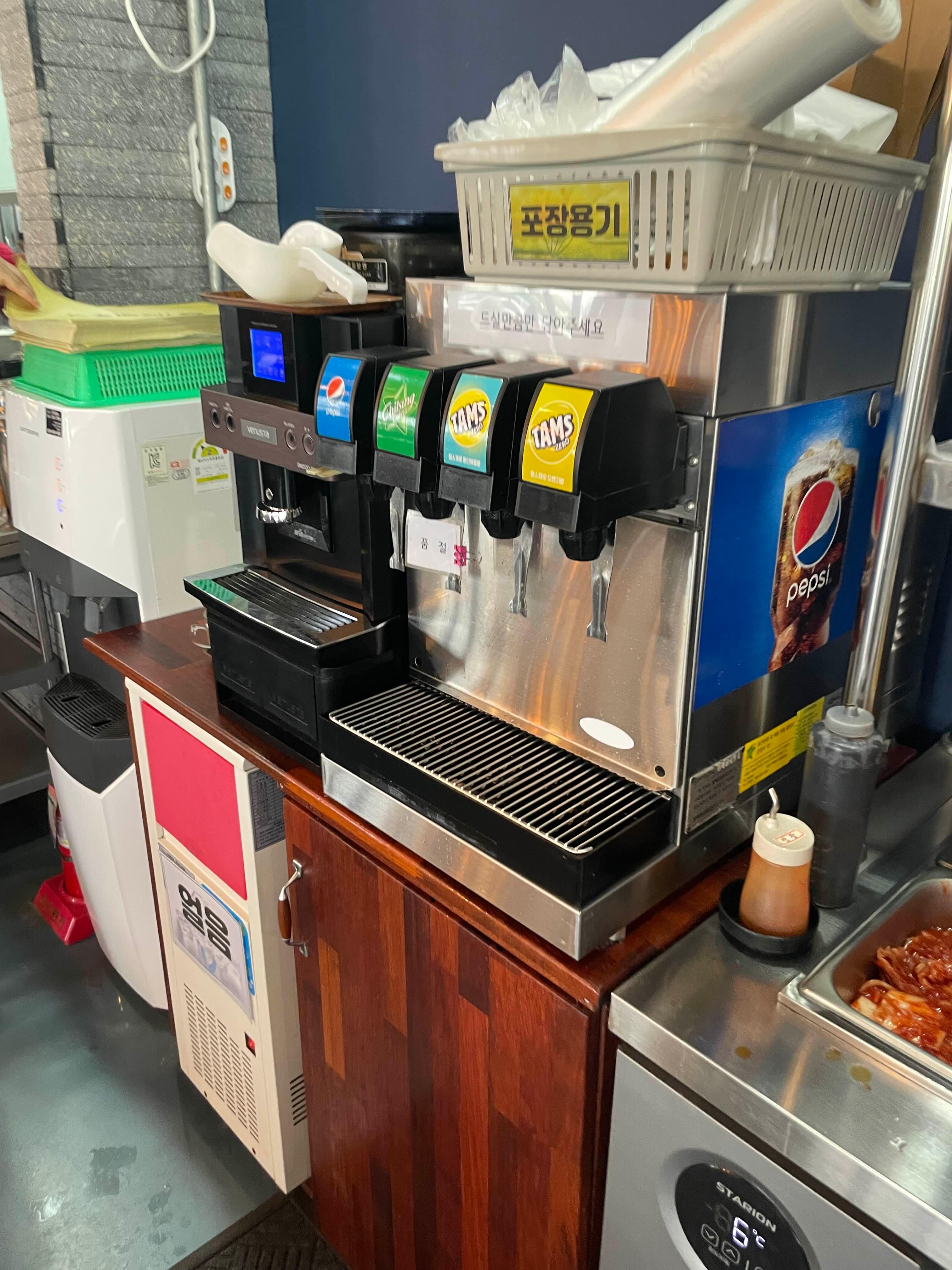 앗!! 이 식당에 셀프코너로 탄산음료가 있다.