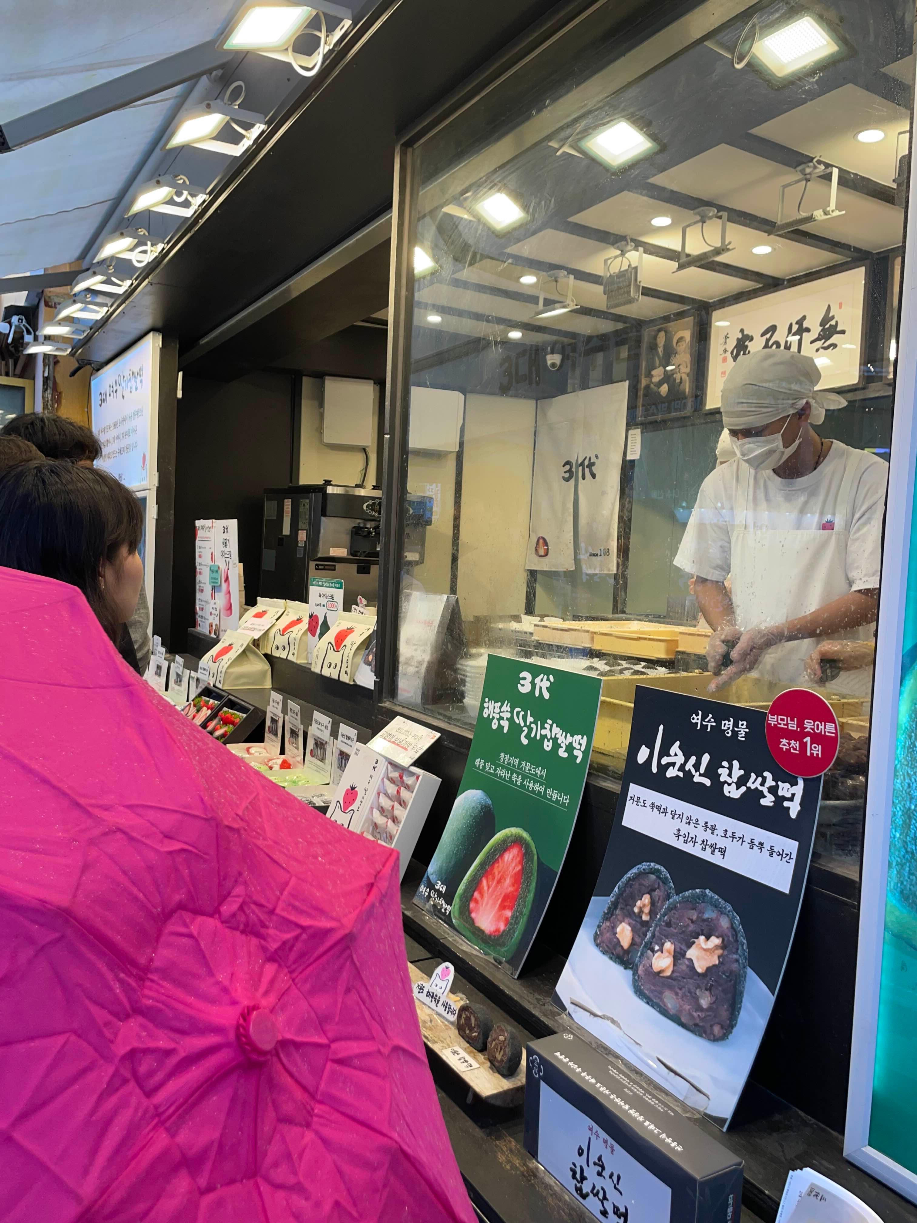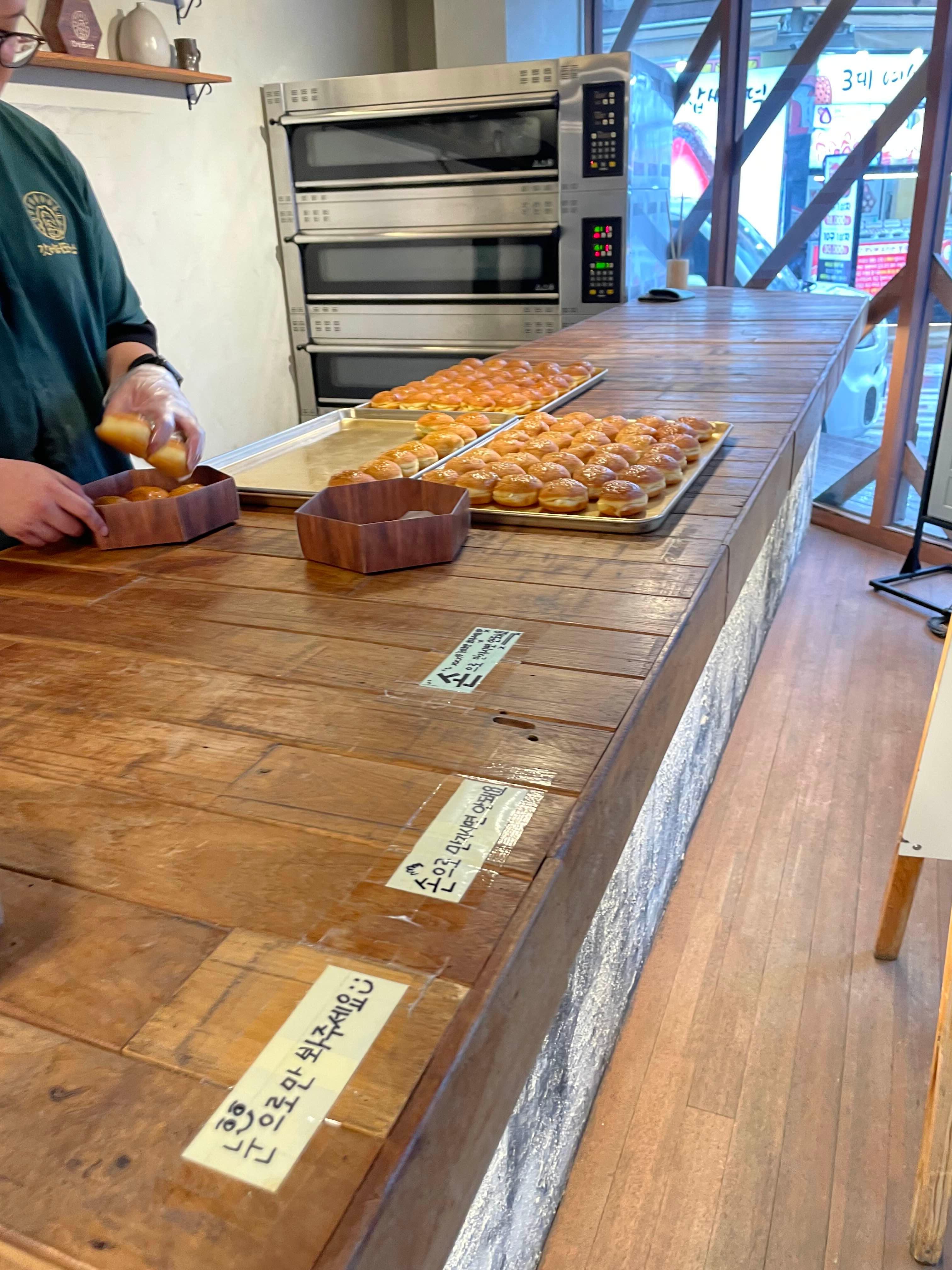 앗!! 딸기모찌 구입하려고 기다리다... 너무 오래 기다려서, 이동한 도너츠 식당.... 이 찹쌀떡은, 판매하는 시간이 너무 오래 걸림.ㅎㅎ