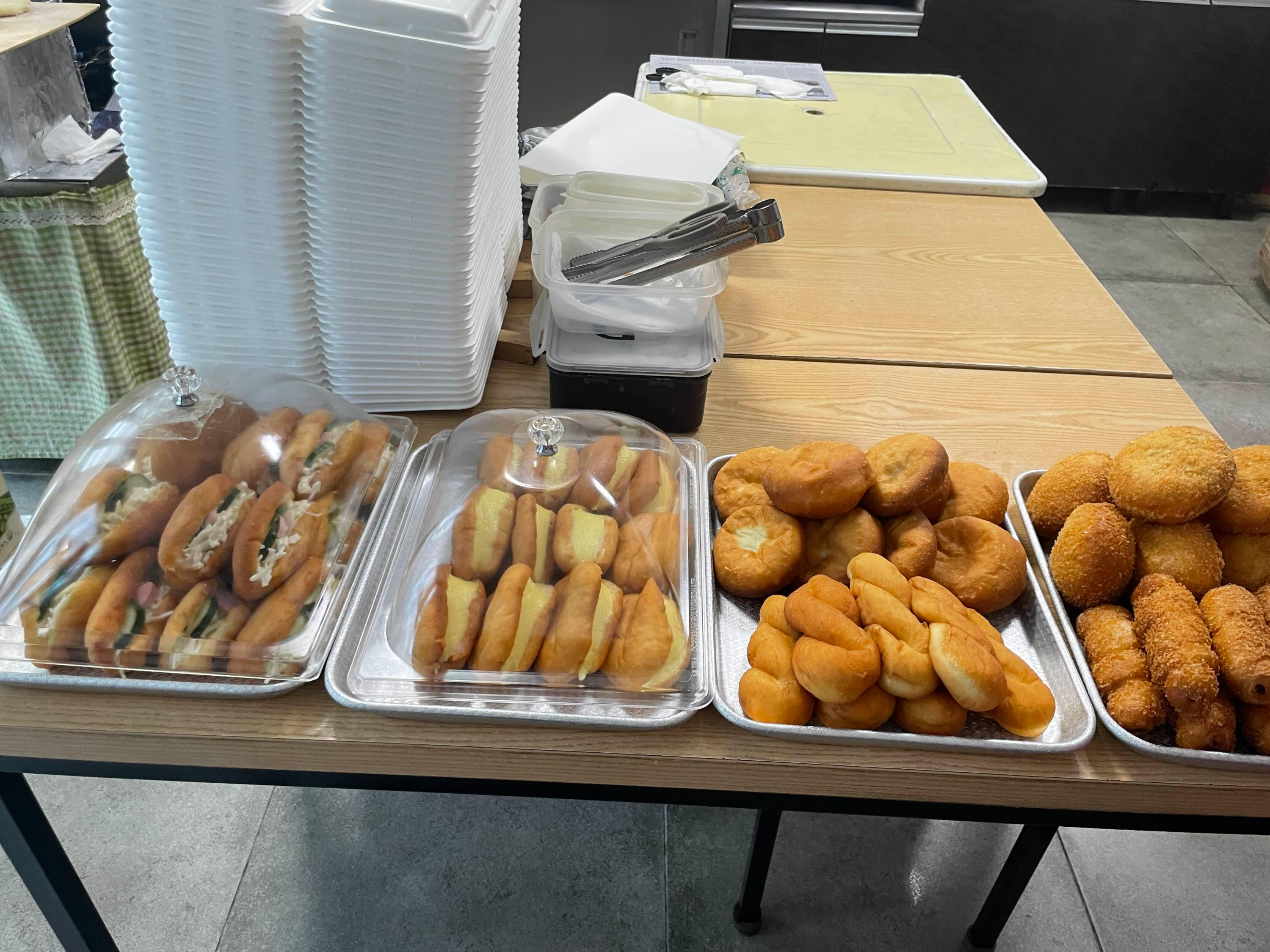 아이가 좋아하는 꽈배기, 팥도넛, 슈크림빵 하나씩 구입한다.