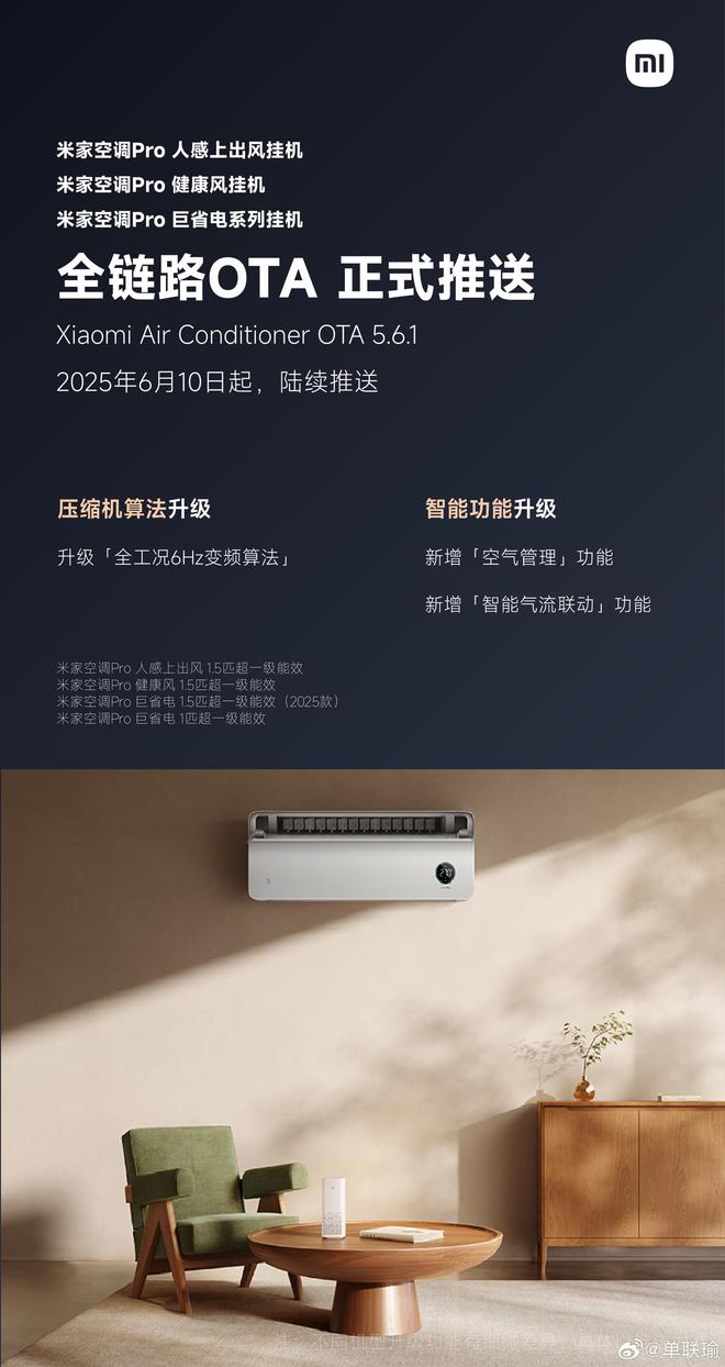IT Home은 6월 11일 샤오미가 미지아 에어컨 프로 시리즈 OTA(온라인 서비스)를 통해 최신 샤오미 에어컨 OTA 5.6.1 버전을 오늘부터 배포한다고 공식 발표했다고 보도했습니다. 업그레이드된 모델은 다음과 같습니다.