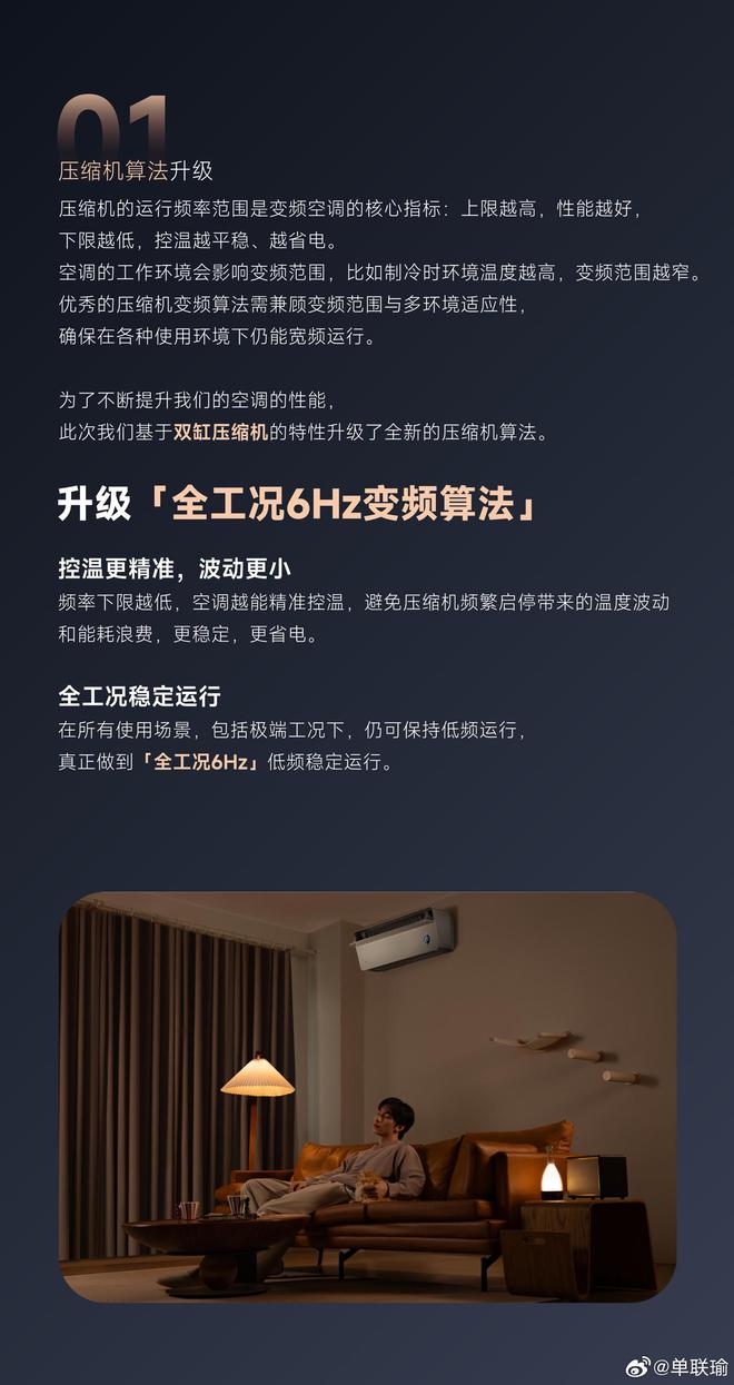 샤오미 그룹 가전제품 부서의 총괄 매니저인 산 리안위는 이번 업그레이드를 통해 압축기 제어 알고리즘이 전면적으로 최적화되어 "모든 작업 조건에 적합한 6Hz 가변 주파수 알고리즘"으로 업그레이드되었으며, 모든 사용 시나리오(극한 작업 조건 포함)에서 안정적인 저주파 작동이 보장되어 온도 제어가 더욱 정확해지고 에너지 절약이 가능해졌다고 소개했습니다.