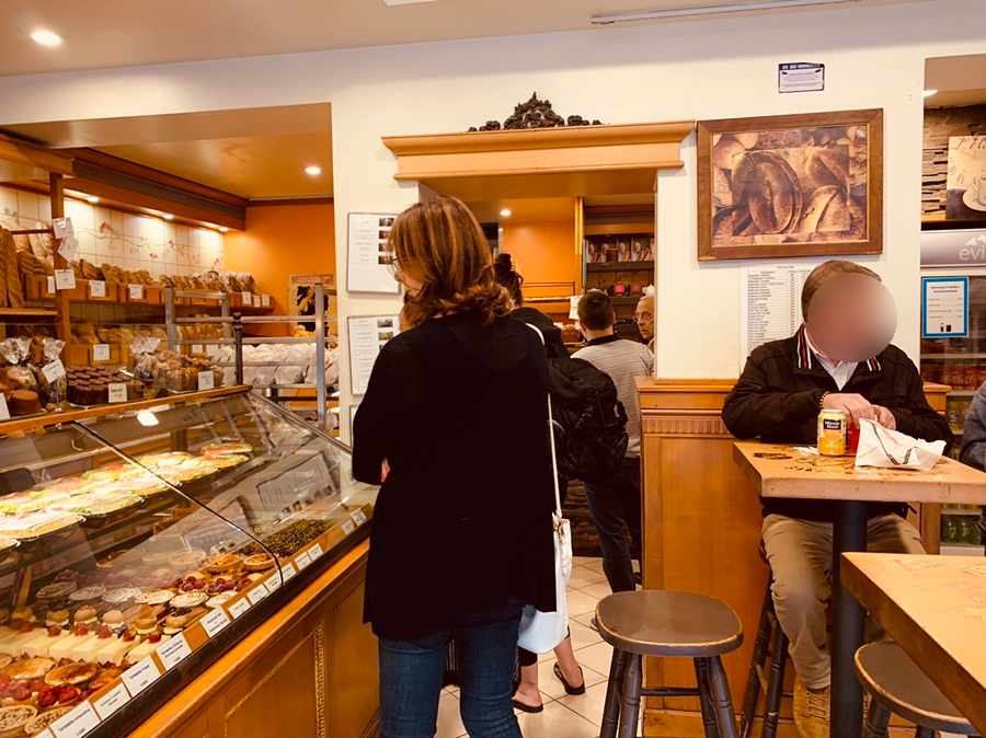 자전거로 아침에 자전거 산책 후 숙소로 복귀하며... 사람들이 많이 있는 빵집을 찾던 중 들렸던 파리바게뜨?(블랑제리 과자점)입니다. 가격은 비교적 저렴한 편이고, 다양한 빵 구경 하기 좋은 곳이네요. 근처 맥도날드도 있었지만, 맥도날드는 아침에 햄버거를 판매하지 않아 프랑스식 아침 빵을 먹기 위해 방문한 제과점입니다.
