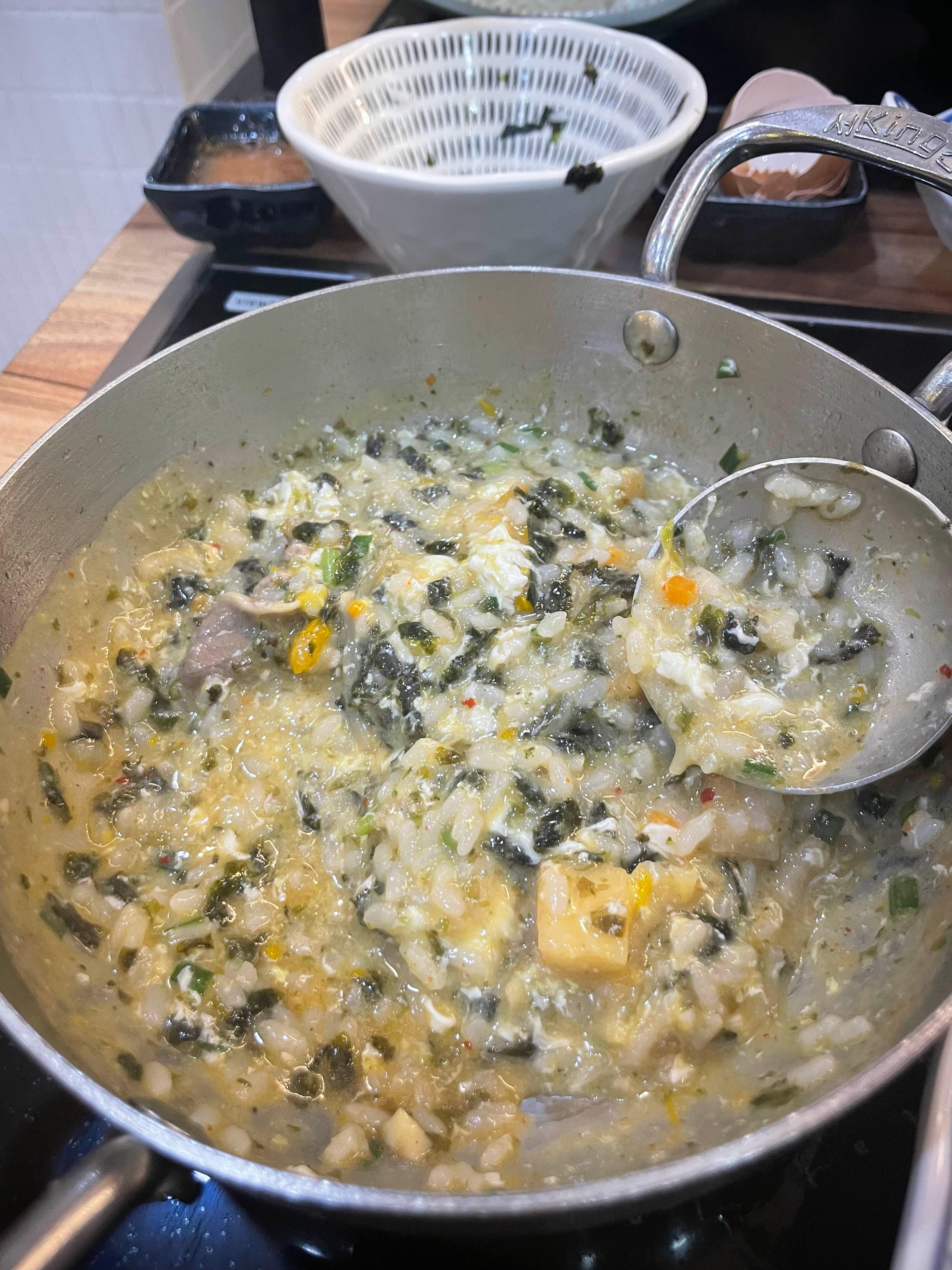죽에 깍두기가 들어가면... 감칠맛이 더 해주는 역할을 해주어서! 추가~~