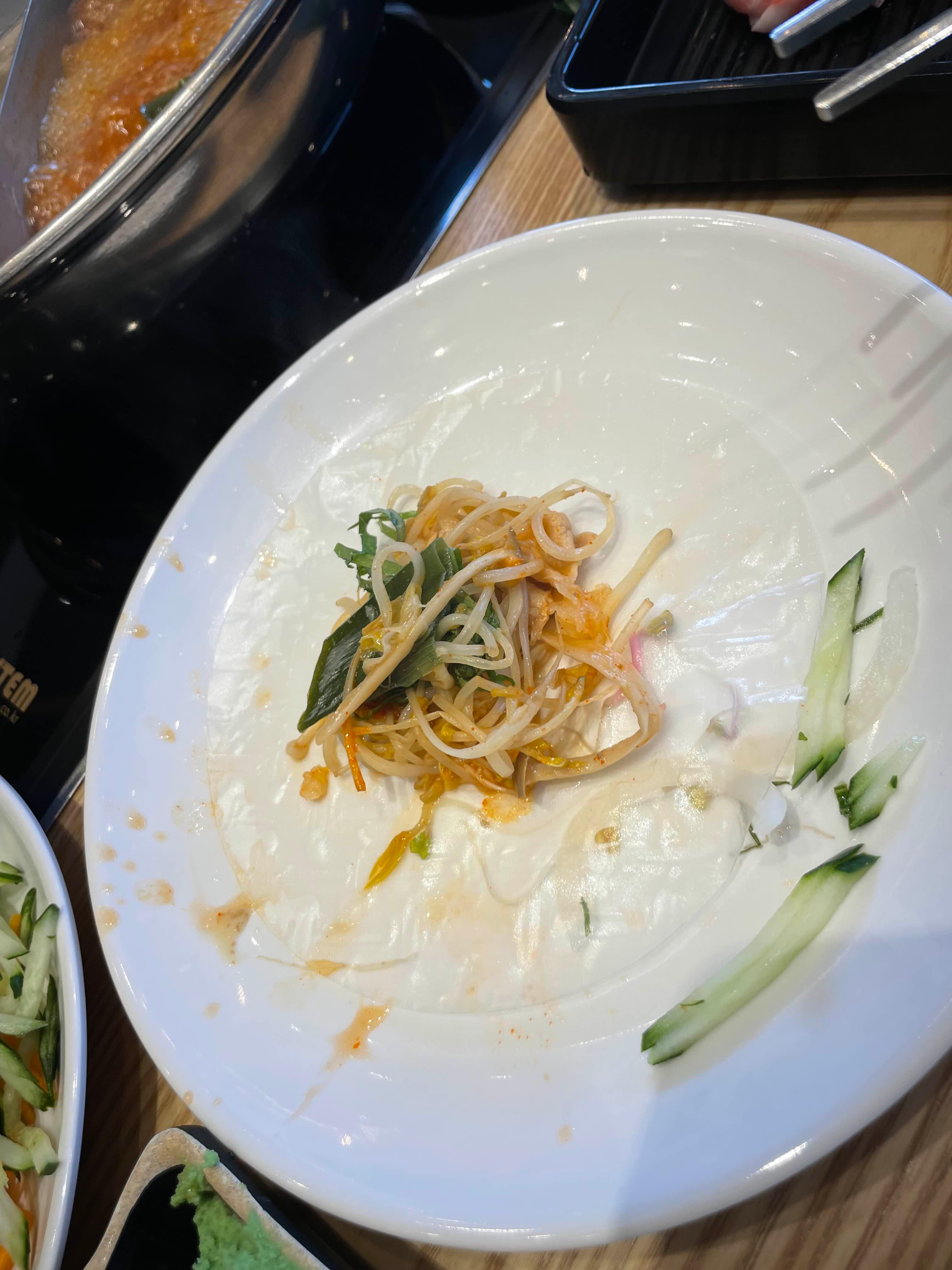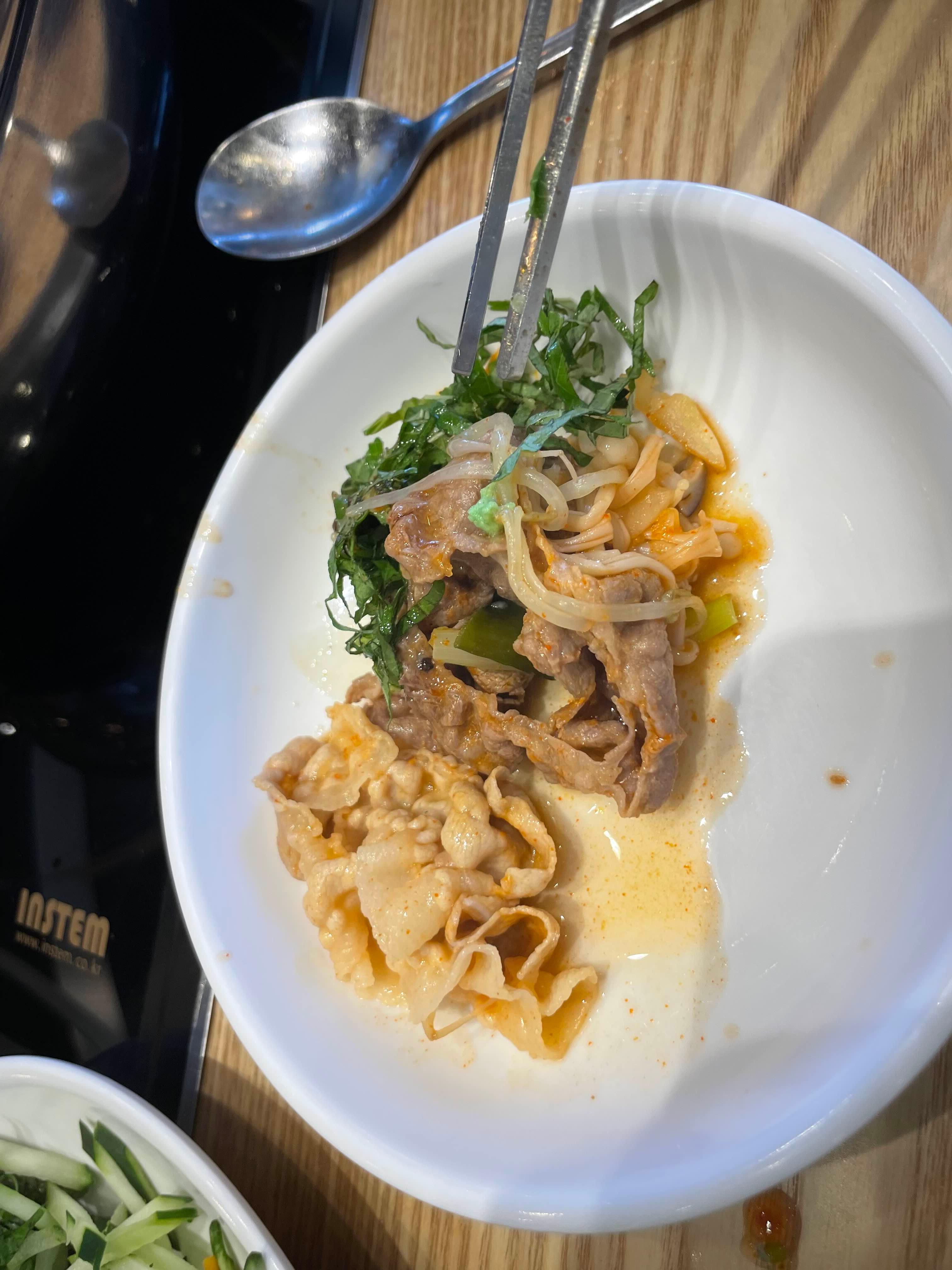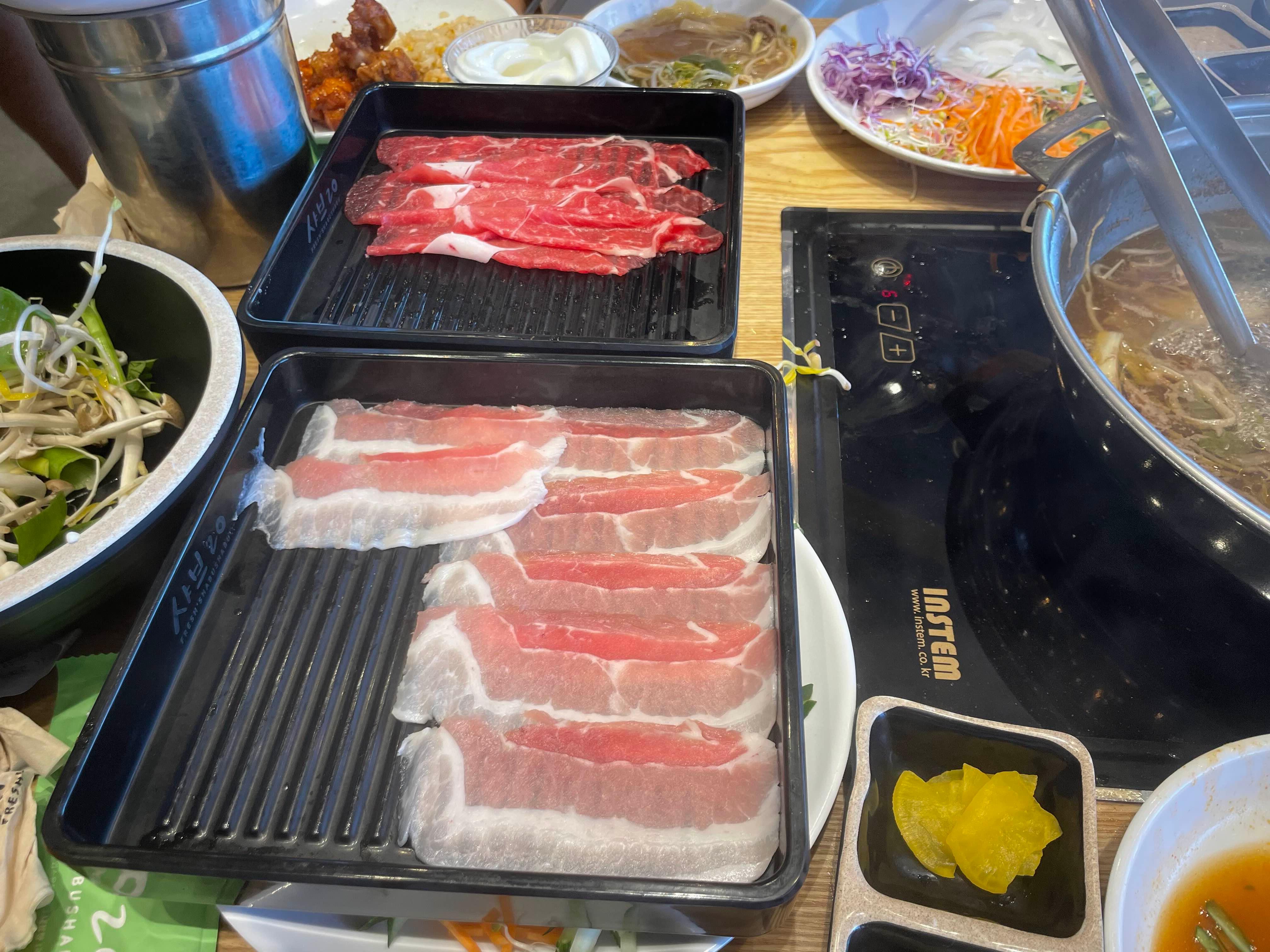 매운 육수에는 돼지고기를 맑은 육수에는 소고기를 넣어서 먹으면 괜찮음!