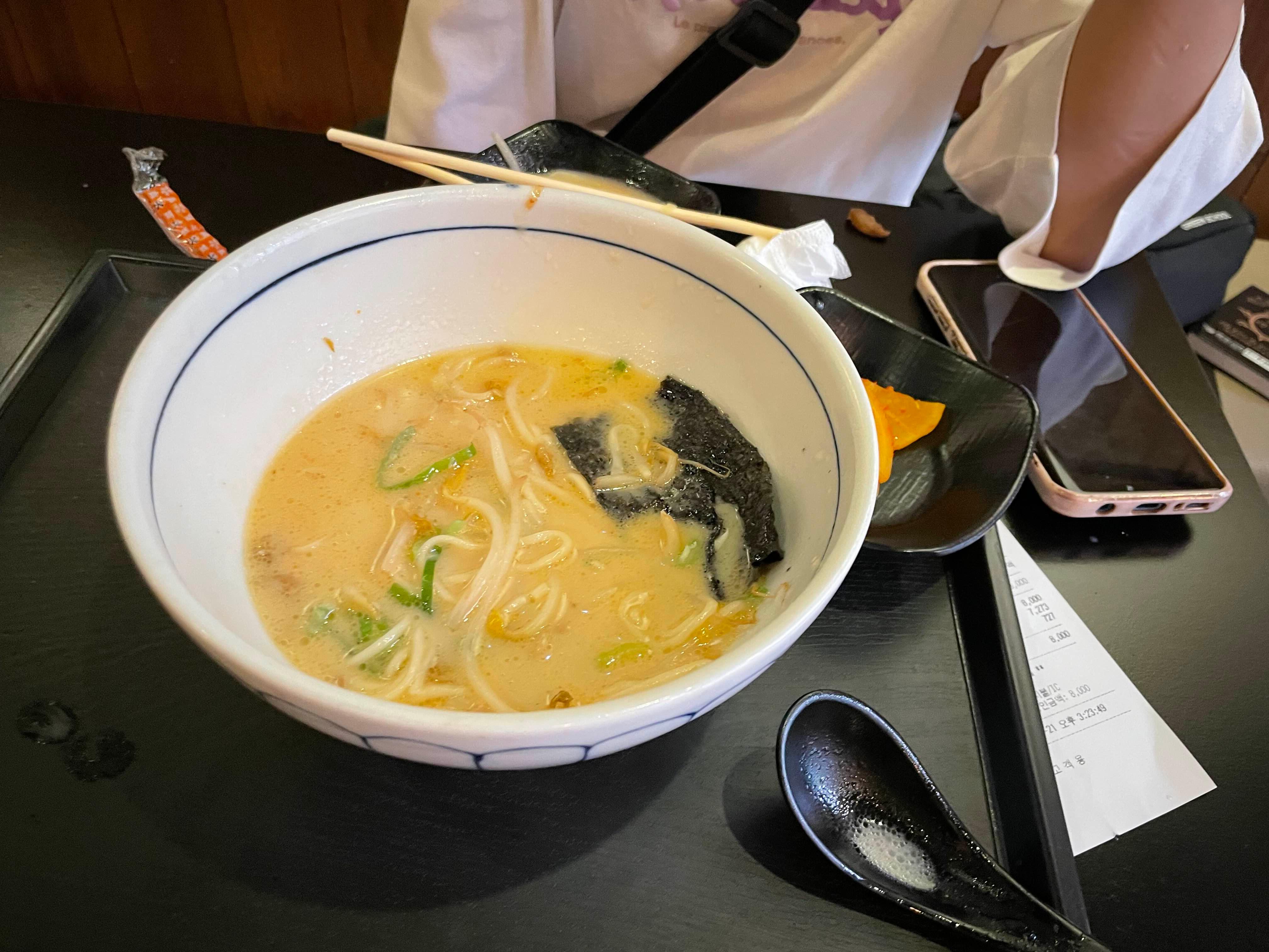 돈코츠라멘을 하나 주문하고 테이블에 앉아본다. ㅎㅎ