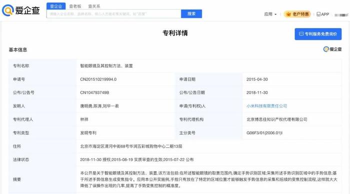 iQiyicha 앱에 따르면, 샤오미 테크놀로지(Xiaomi Technology Co., Ltd.)는 다수의 "인차가(人车家)" 상표를 출원했으며, 국제 분류에는 과학 기기, 운송 도구, 가구 등이 포함됩니다. 현재 일부 상표는 성공적으로 등록되었습니다. 또한, 샤오미는 "스마트 안경 및 그 제어 방법 및 장치", "정보 표시 방법, 장치 및 스마트 안경" 등 스마트 안경 관련 특허도 출원했습니다.