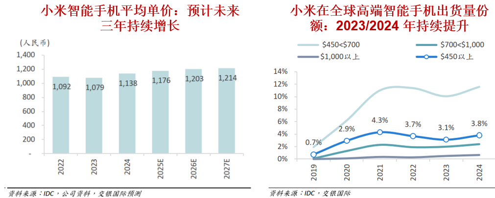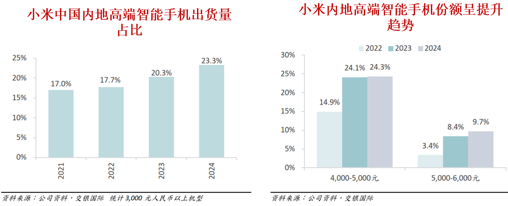 2024년, 샤오미는 고급 스마트폰 시장에서 "역주기적 돌파전"을 시작했습니다. 450달러 이상의 고급 휴대폰의 글로벌 점유율이 32.4%에서 31.4%로 줄어들고, 1,000위안 이상의 초고가 시장은 더욱 크게 감소했지만, 샤오미는 이 축소되는 영역에서 "추세에 반하는 시장 점유율 두 배 증가"를 달성했습니다. 출하량 점유율은 8.0%에서 8.8%로 뛰어올랐고, 글로벌 점유율은 3.1%에서 3.8%로 증가했습니다. 이는 고급 시장 파이가 줄어들 때 "기술 불도저"를 사용하여 독점적인 성장 곡선을 만드는 것과 같습니다.