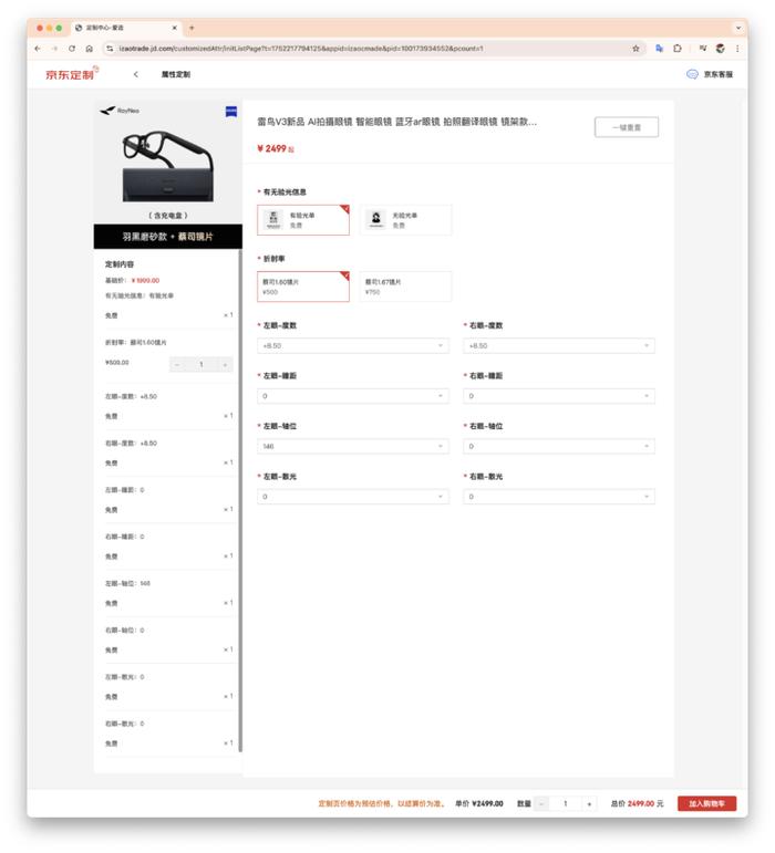 샤오미와 비교했을 때, Thunderbird V3의 온라인 안경 피팅은 더 투명해 보이고, 지원 도수도 명월 렌즈보다 높습니다. JD.com의 안경 피팅은 근시 -2000도부터 원시 +850도까지 지원하며, 최종 가격은 더 높지만 유연성도 더 뛰어납니다.