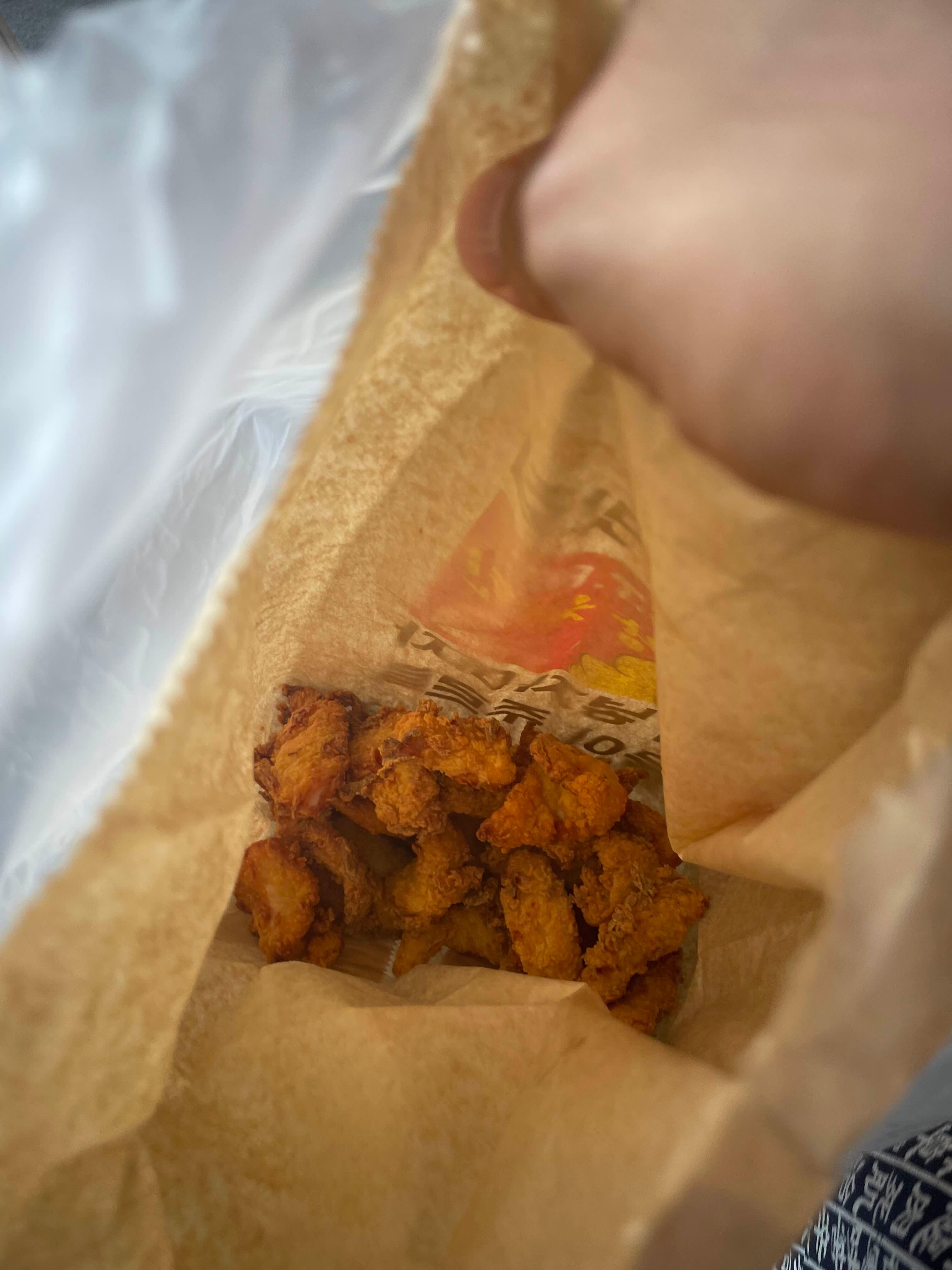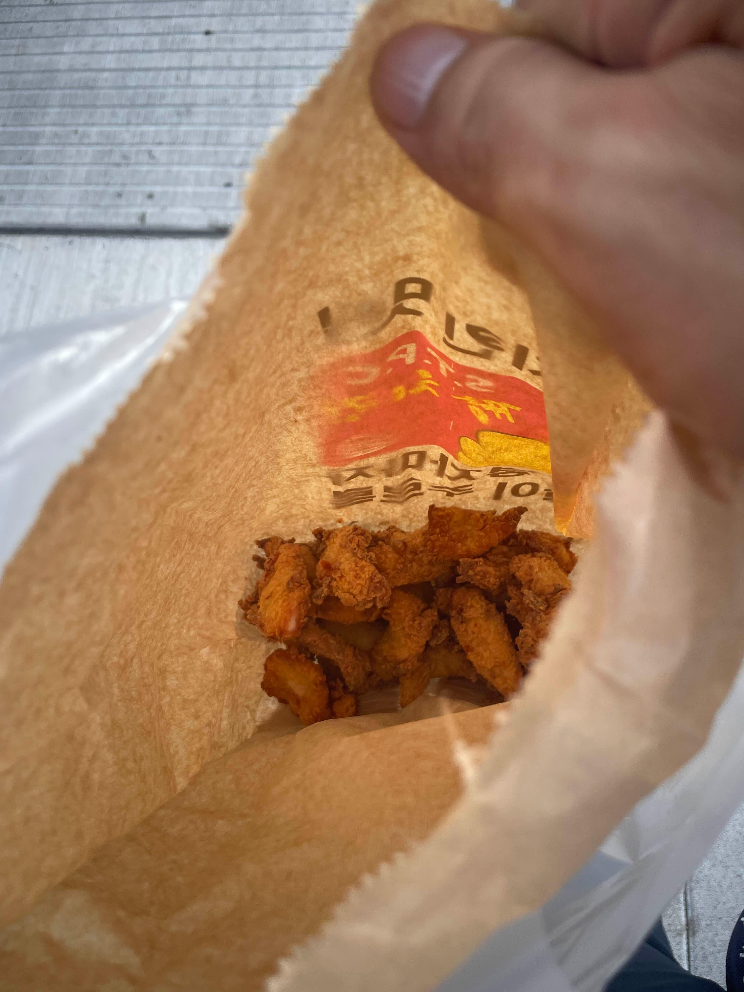 순살로 하나 주문하면, 매장 앞에 있는 치킨을 그대로 담아 주실줄 알았는데.... 기름에 한번 튀겨 주신다.