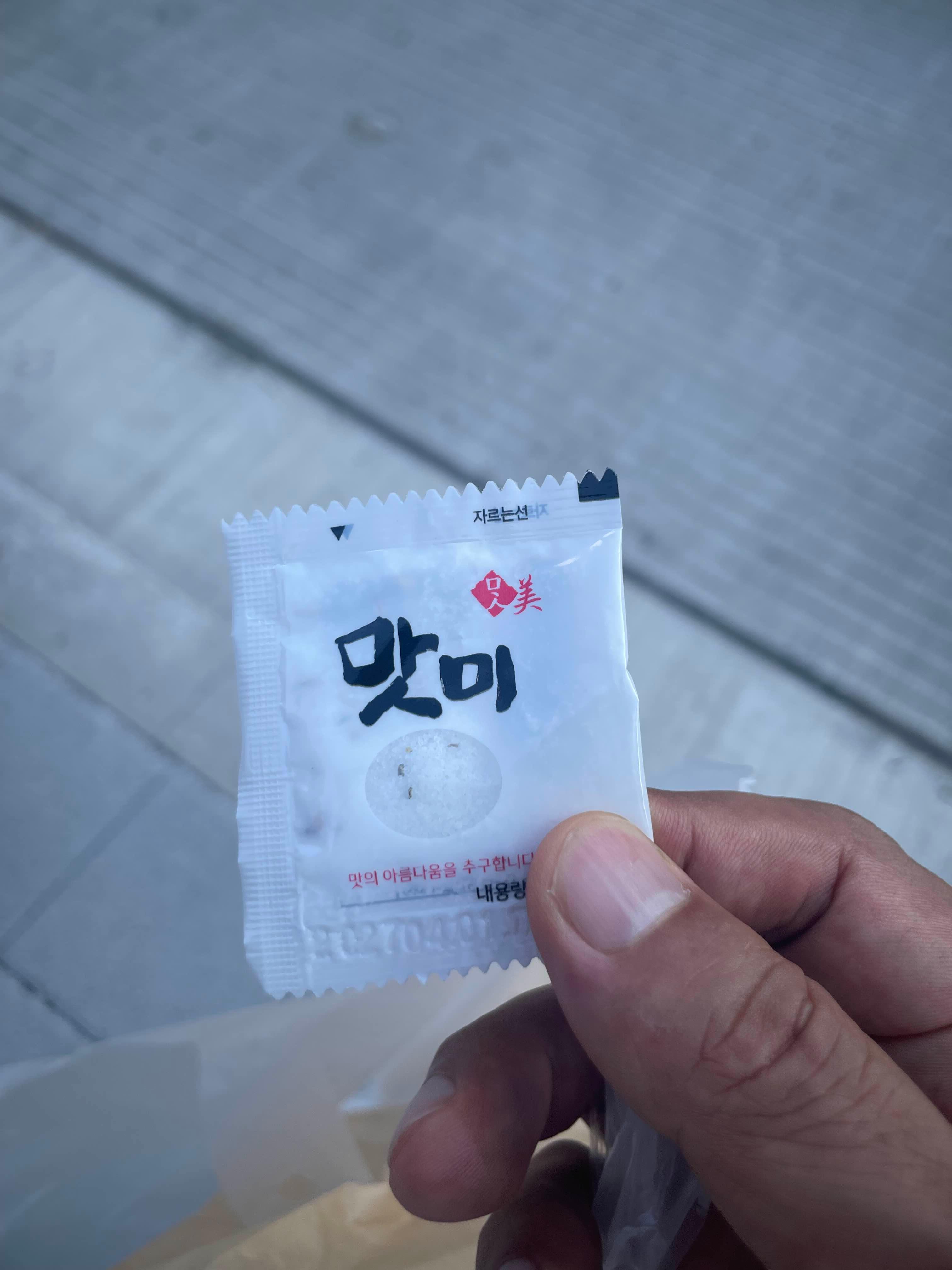 치킨을 좀 먹다 보니... 느끼함이 올라온다. 봉투 아래쪽에 소금이 있었다.ㅎㅎ