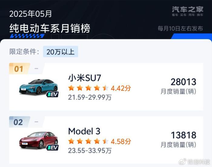 샤오미 SU7의 누적 판매량은 2만 8000대에 달하는 반면, 테슬라 모델 3의 누적 판매량은 1만 3800대에 불과합니다.
