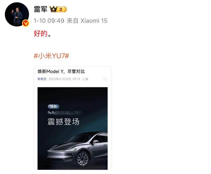 샤오미 SU7+샤오미 YU7은 의심할 여지 없이 테슬라 판매에 가장 큰 영향을 미칠 조합이 될 것입니다.