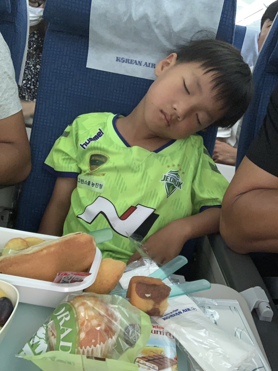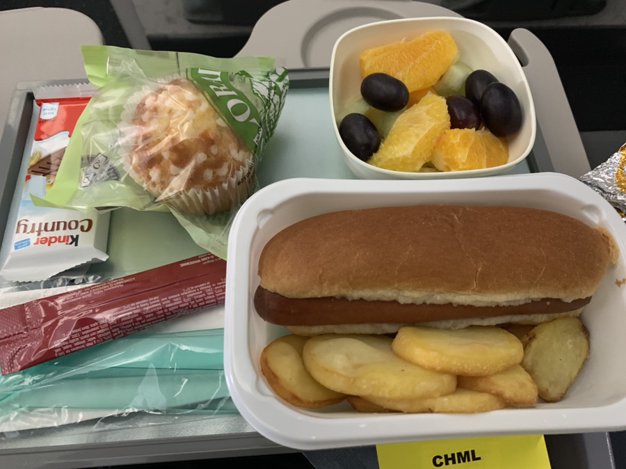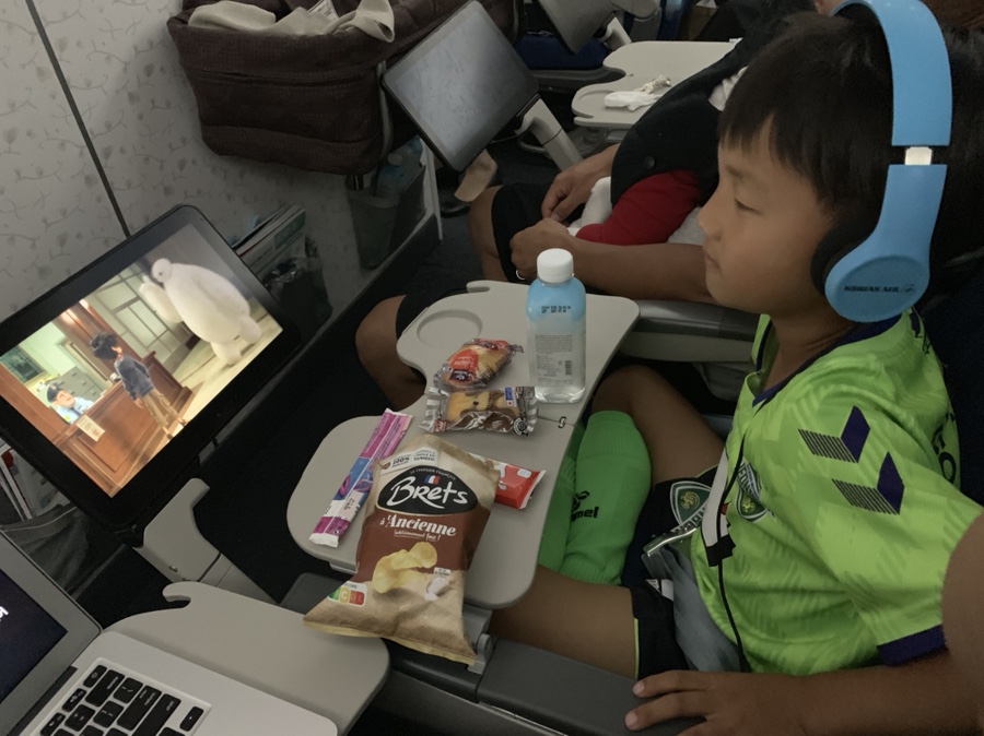 이륙 후 바로 나온 기내식을 모두 해치우고~ 아이가 평소에 즐겨보는 빅 히어로 한편을 보고 푹 잠들더군요. 영화도 재미있게 보고, 한숨 푹 자고 일어나니 또 기내식이 나오더군요. 프랑스행 비행기 시간이 12시간이니 너무 긴 시간이네요. 시간을 빠르게 보내는 방법이 먹고 자고, 먹고 자고라서 비행기에서 기내식을 여러 번 주나 봅니다. 1차 먹고 자고 하니... 2차 먹는 기내식 핫도그가 나오네요. 아이가 일어나서 2차 기내식 핫도그를 먹어야 하는데.... 결국 쭉~~~ 자버리네요. 결국 아이 기내식과 내 기내식 2개를 먹었네요. 아이가 안 일어날 줄 알았으면 내 기내식은 안 시키는 건데...