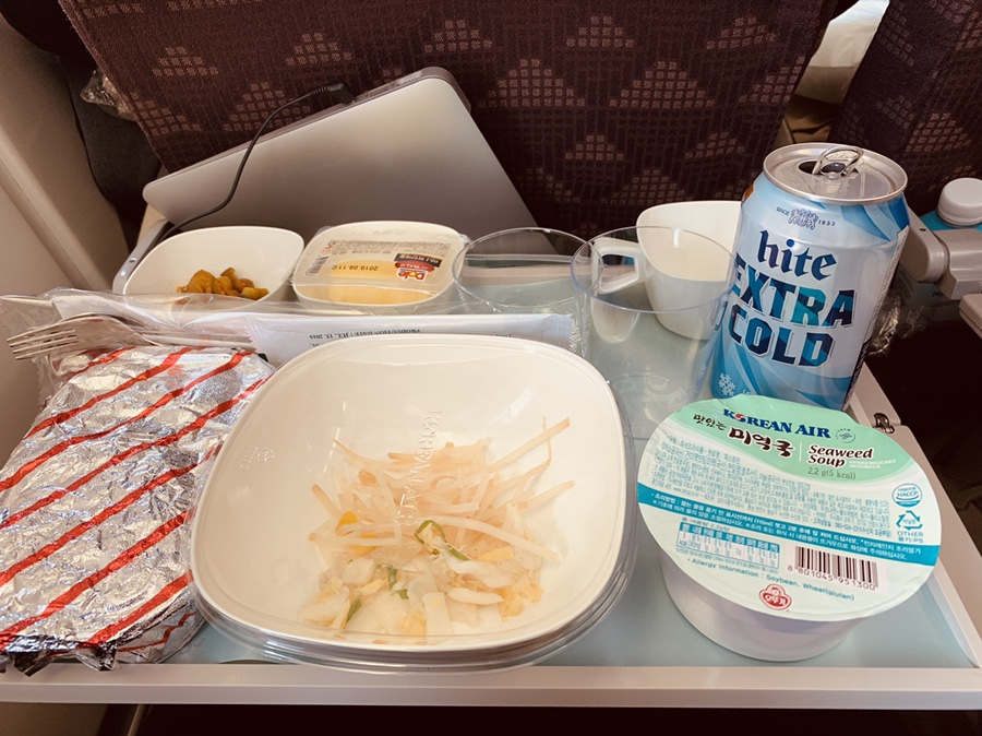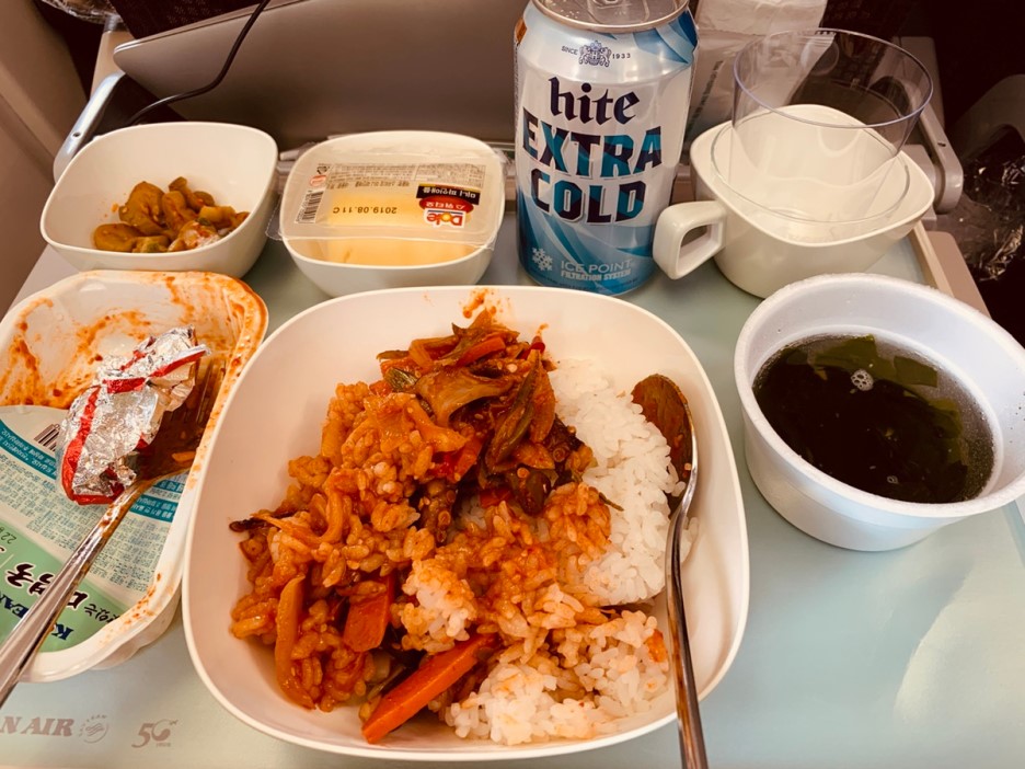 비빔밥을 맛있게 비벼서 한입 먹어보니 맛이 괜찮더군요. 그래서 바로 아이 테이블로 이동~ 아동식으로 나온 특별 기내식 피자는 제가 모두 처리했네요. 피자는 좀 느끼하기는 했지만 먹을만 하네요.ㅎㅎ 그리고 기내식과 함께 나온 맥주~ 한잔 쭉 마시고 푹~ 자려고 하였지만 아이가 옆에서 요구 사항이 많으니 잘 수가 없이~ 노트북으로 그동안 못 보았던 의사 요한을 3편을 연속 시청하게 되었네요~^^