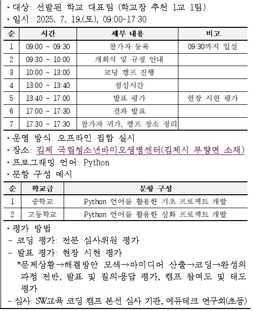 도내 중·고생 144명이 여름방학을 맞아 문제해결형 코딩 프로젝트에 몰입했다. 전북특별자치도교육청은 지난 19일 김제 국립청소년바이오생명센