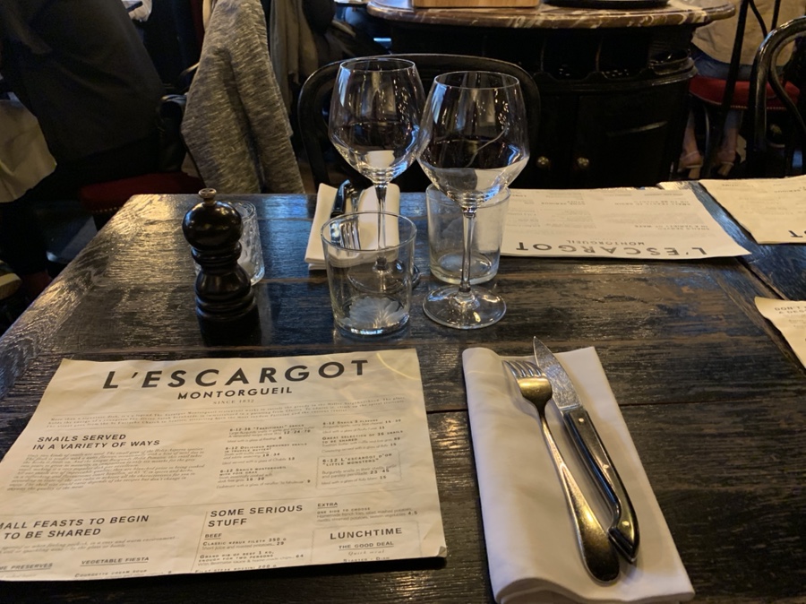 프랑스를 대표하는 음식이 바게트? 가 있지만 바게트 외 다양한 먹거리가 있죠. 오늘은 프랑스 파리 르 보르 박물관 근처에 위치한 달팽이 요리 전문점(L'Escargot Montorgueil)에 방문하였습니다. 달팽이 요리와 푸아그라(거위 간), 소고기 타르트(육회)를 주문하였고, 아이들용 스테이크, 치킨요리를 주문해 보았네요