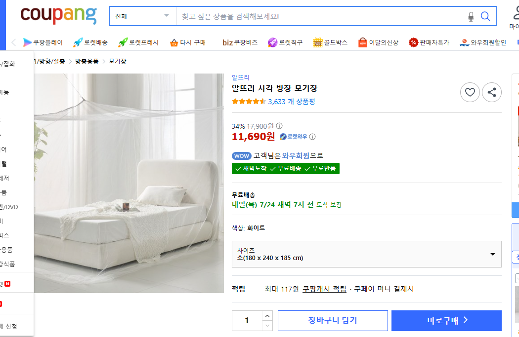 그래서, 친환경적인 모기퇴치!! 모기장으로 구입해 보았다.