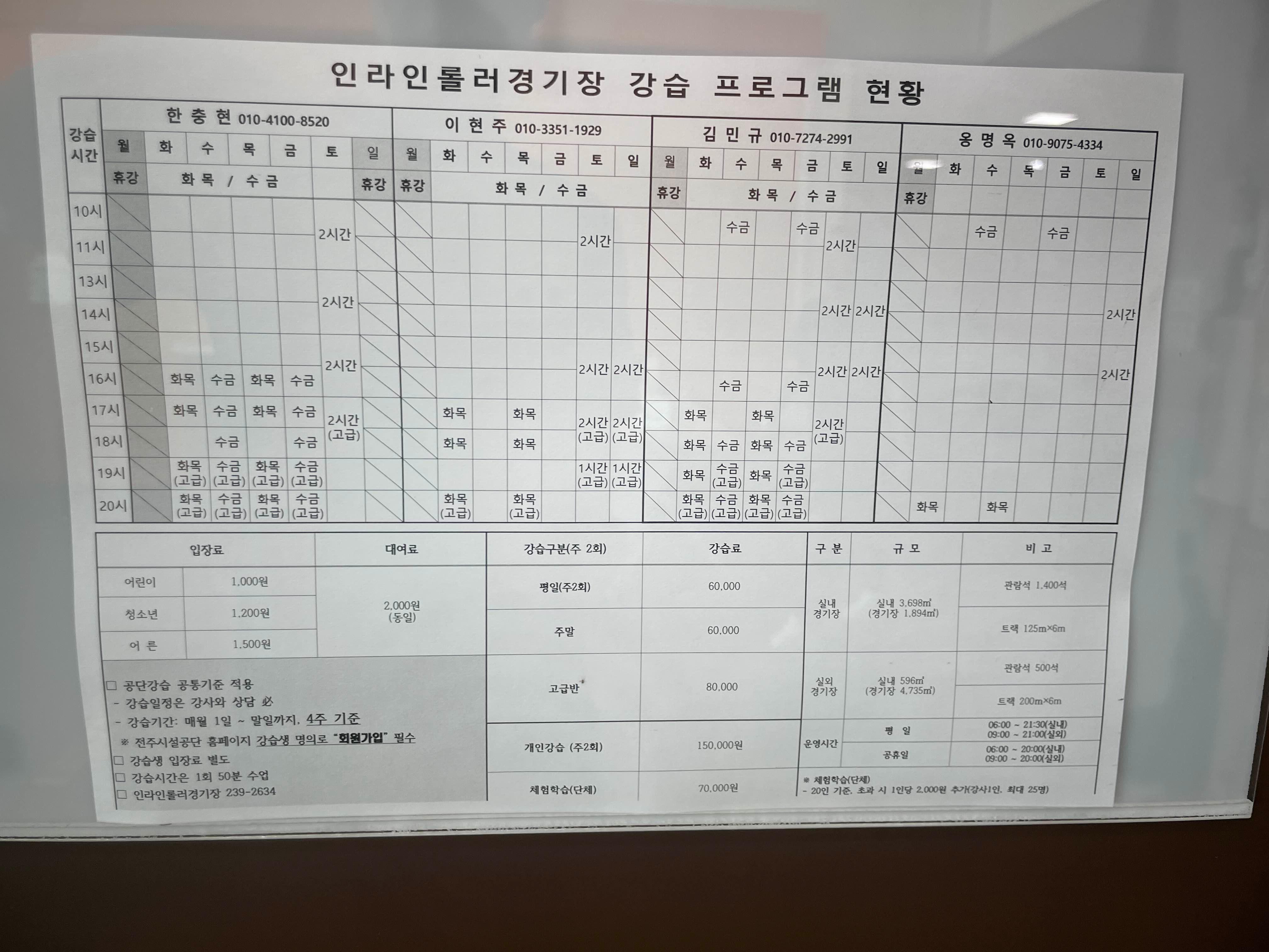 사전에 강습에 대해 확인하니... 원하는 시간 때 강사님에게 연락해서 직접 예약을 해야 한다고 한다.