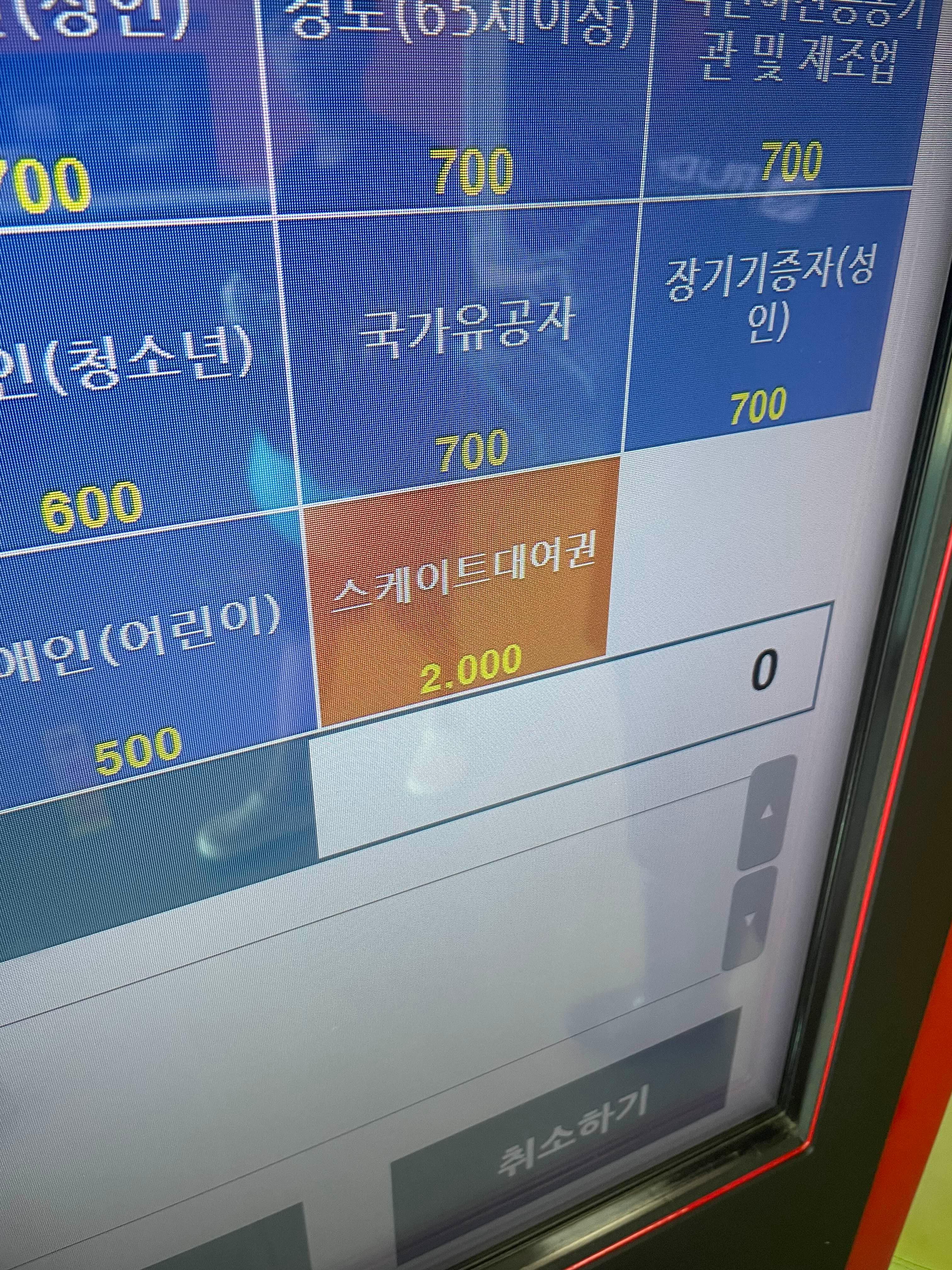 입구 로비에 설치된 키오스크를 이용하여 이용권 발권!!