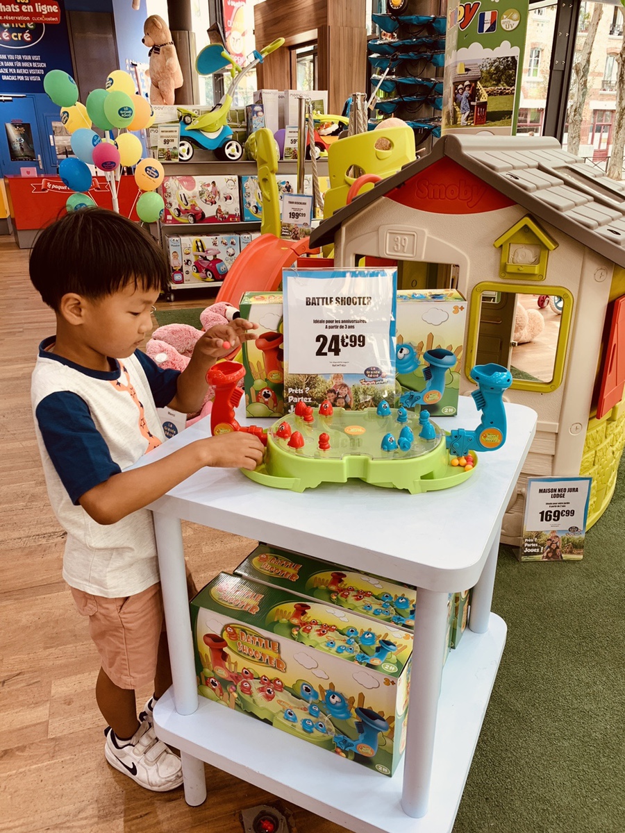 장난감 가게에 킥보드도 보이더군요. 킥보드는 이미 있고, 아이가 자전거를 타는 나이라서 페스~ 장난감 가게가 아니라 유아용품 전문매장 같더군요. 아이용 자전거도 보이고..... 킥 보드 옆에는 내가 사고 싶었던 엑스샷 물총도 보이더군요. 한국에서는 판매되지 않은 다양한 물총이 있지만.... 이것도 인터넷으로 구입이 가능하기에 페스~ 장난감 가게 한편에는 아이들이 체험할 수 있는 장난감을 4개 정도 설치되어 있더군요. 아이들은 장난감은 안 보고 체험하는 장난감(베틀 숍, 낚시게임, 개구리 게임)을 즐기기 시작하네요~