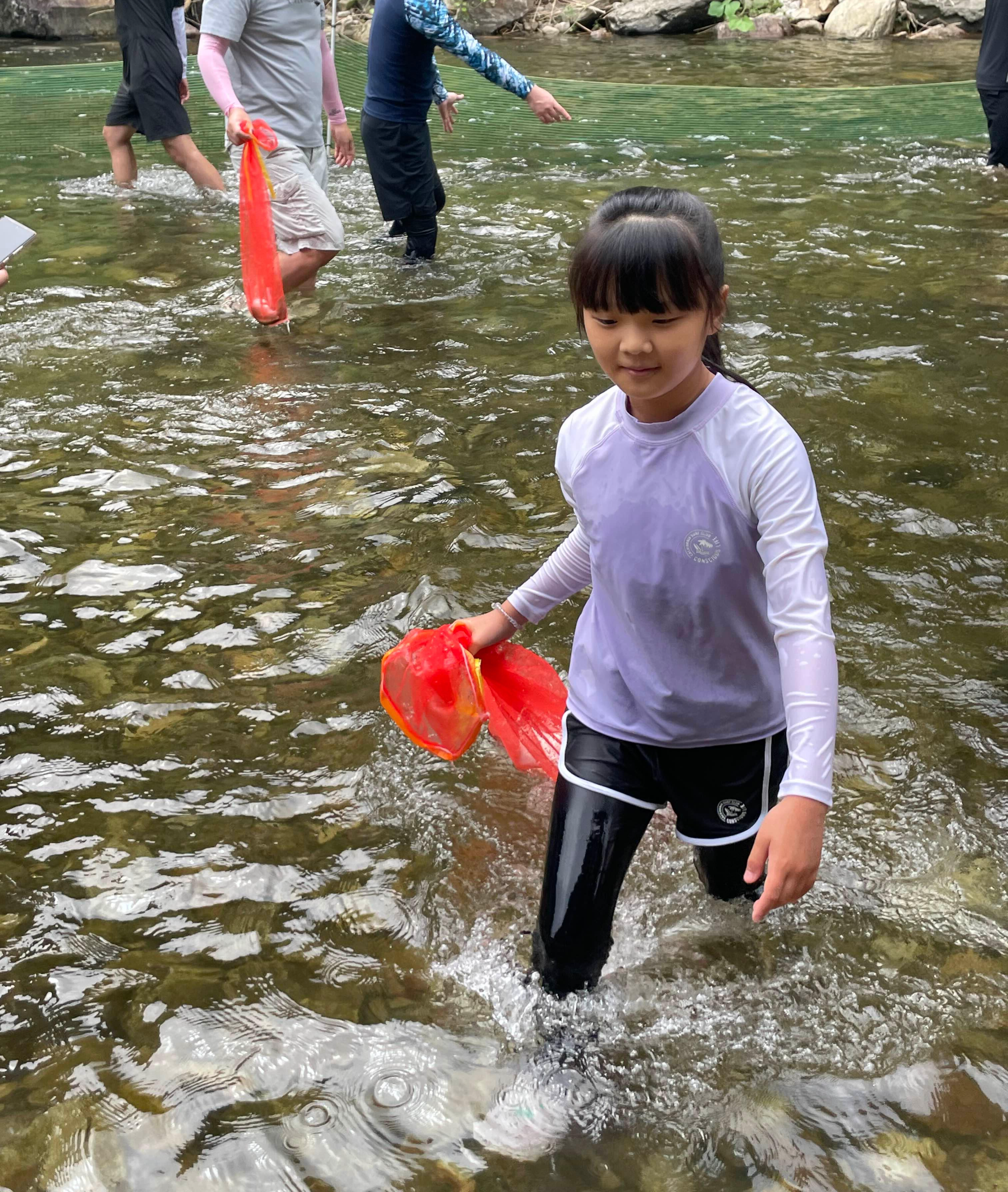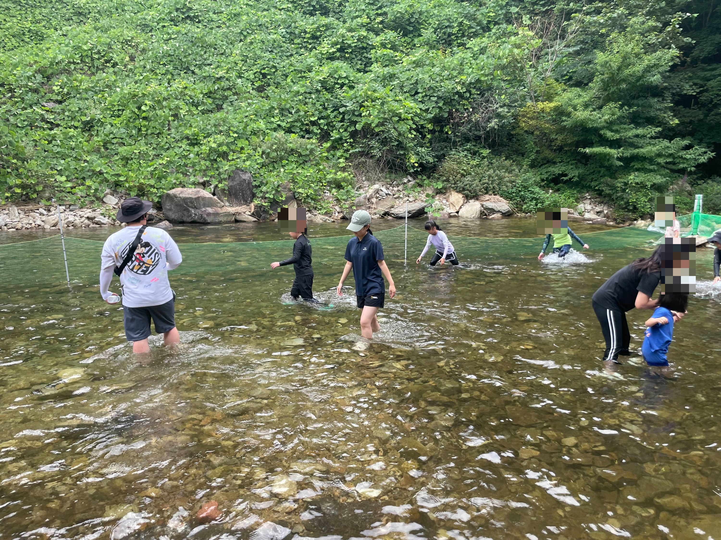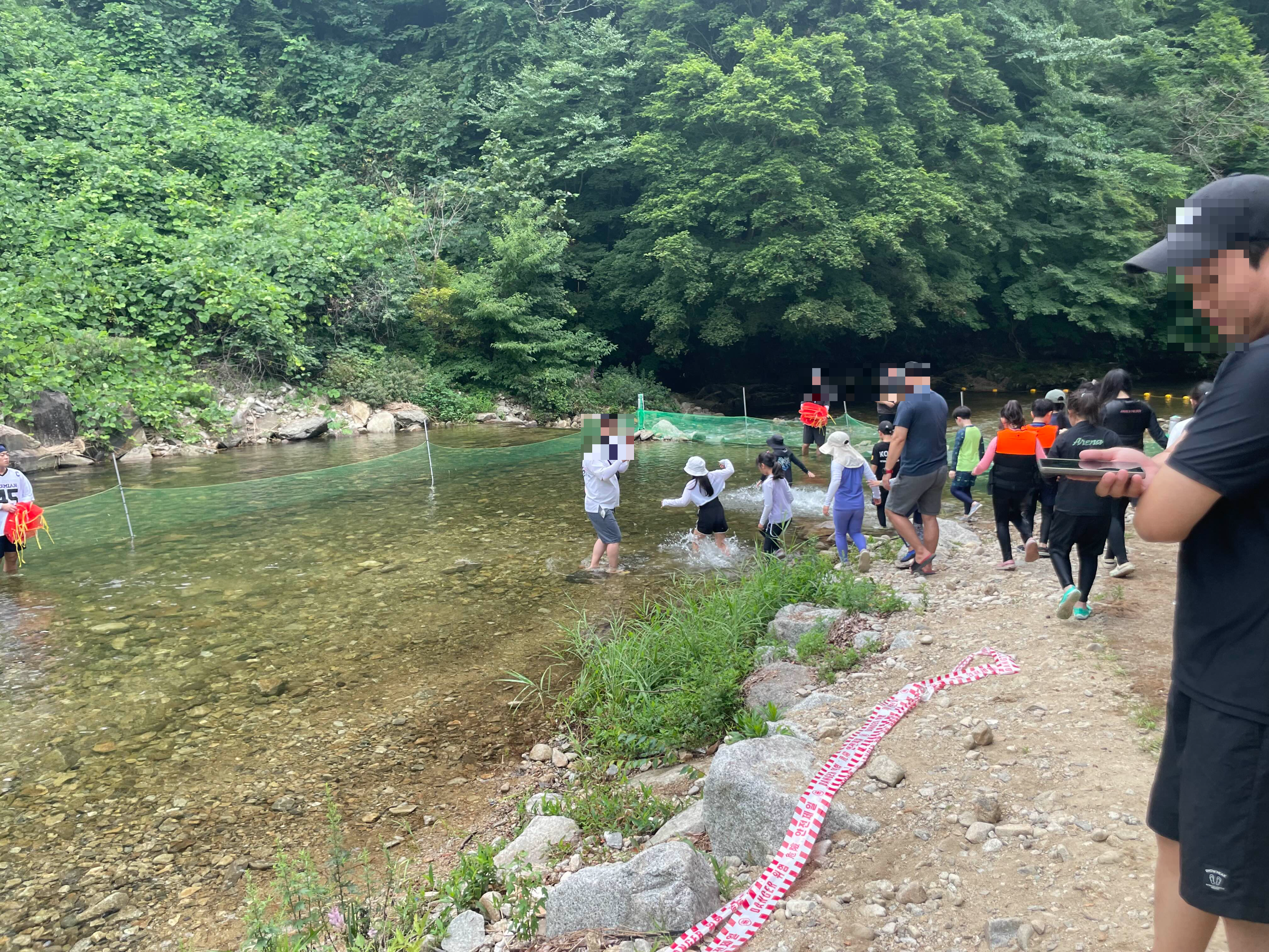 마지막!! 송어 잡기~~ 한 마리도 못 잡은 팀에게... 행사진행요원?(공무원) 분들이 투입해서 잡아주신다. 주말에도 고생이 많으시다.